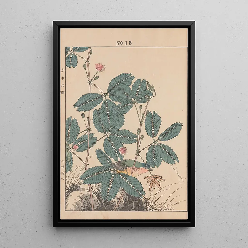 La stampa d'arte Keinen kach gafu Pl017 di Imao Keinen è un'opera vibrante che mette in luce la ricchezza della flora giapponese. I colori vivaci e i motivi floreali dinamici si intrecciano per creare una composizione allo stesso tempo armoniosa e affascinante. La tecnica della stampa, perfezionata da Keinen, permette di rendere ogni dettaglio con una finezza notevole, evocando la leggerezza e la bellezza dei fiori. Questa tela, un vero omaggio alla natura, invita a una contemplazione serena e poetica, trasportando lo spettatore in un giardino rigoglioso.
