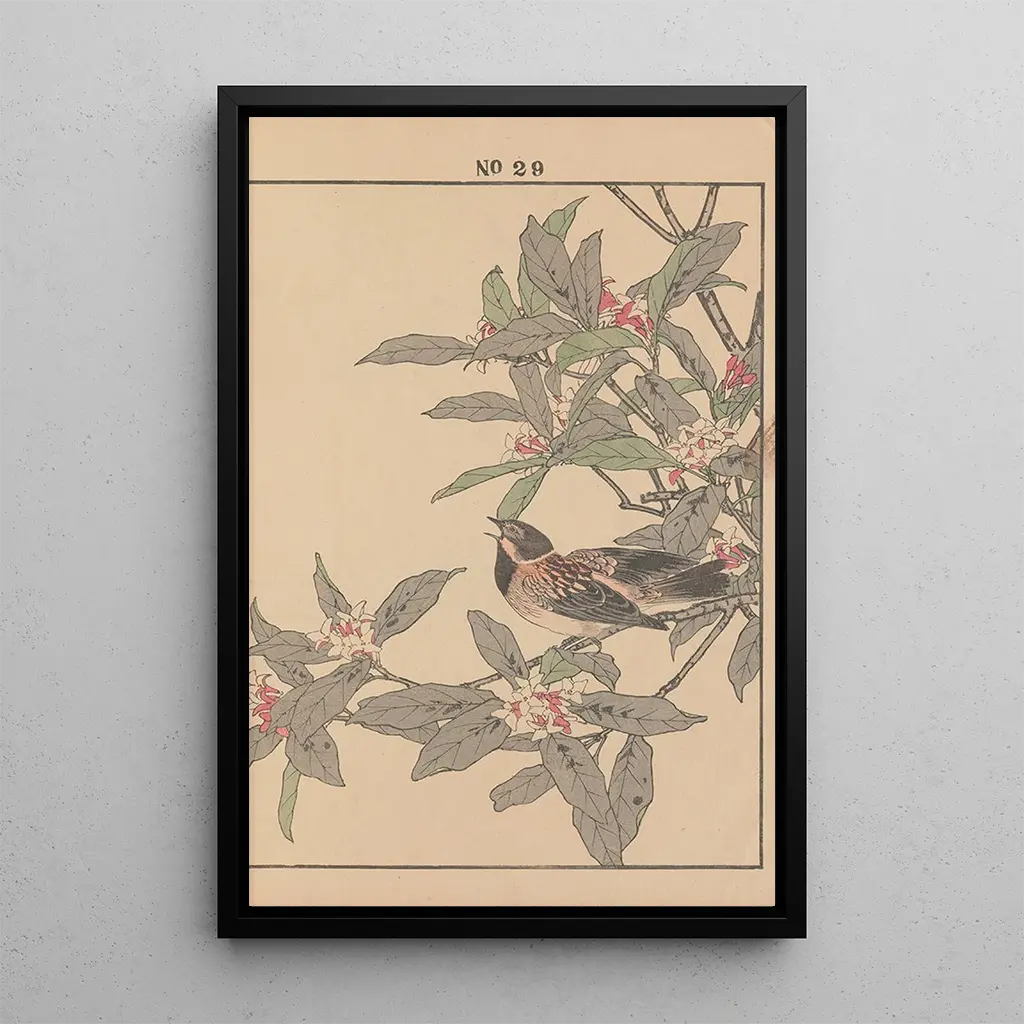 La stampa d'arte Keinen kach gafu Pl080 ci trasporta in un mondo in cui la natura è celebrata con una raffinatezza eccezionale. Le tonalità morbide e i dettagli raffinati di quest'opera evocano la tranquillità dei paesaggi giapponesi. La tecnica dell'estampe ukiyo-e, così apprezzata in Giappone, è messa in risalto da contorni delicati e motivi floreali incantevoli. Ogni elemento della composizione sembra raccontare una storia, creando un'atmosfera di pace e contemplazione. Questo quadro invita alla fuga, permettendo all'osservatore di perdersi nella bellezza effimera della natura.