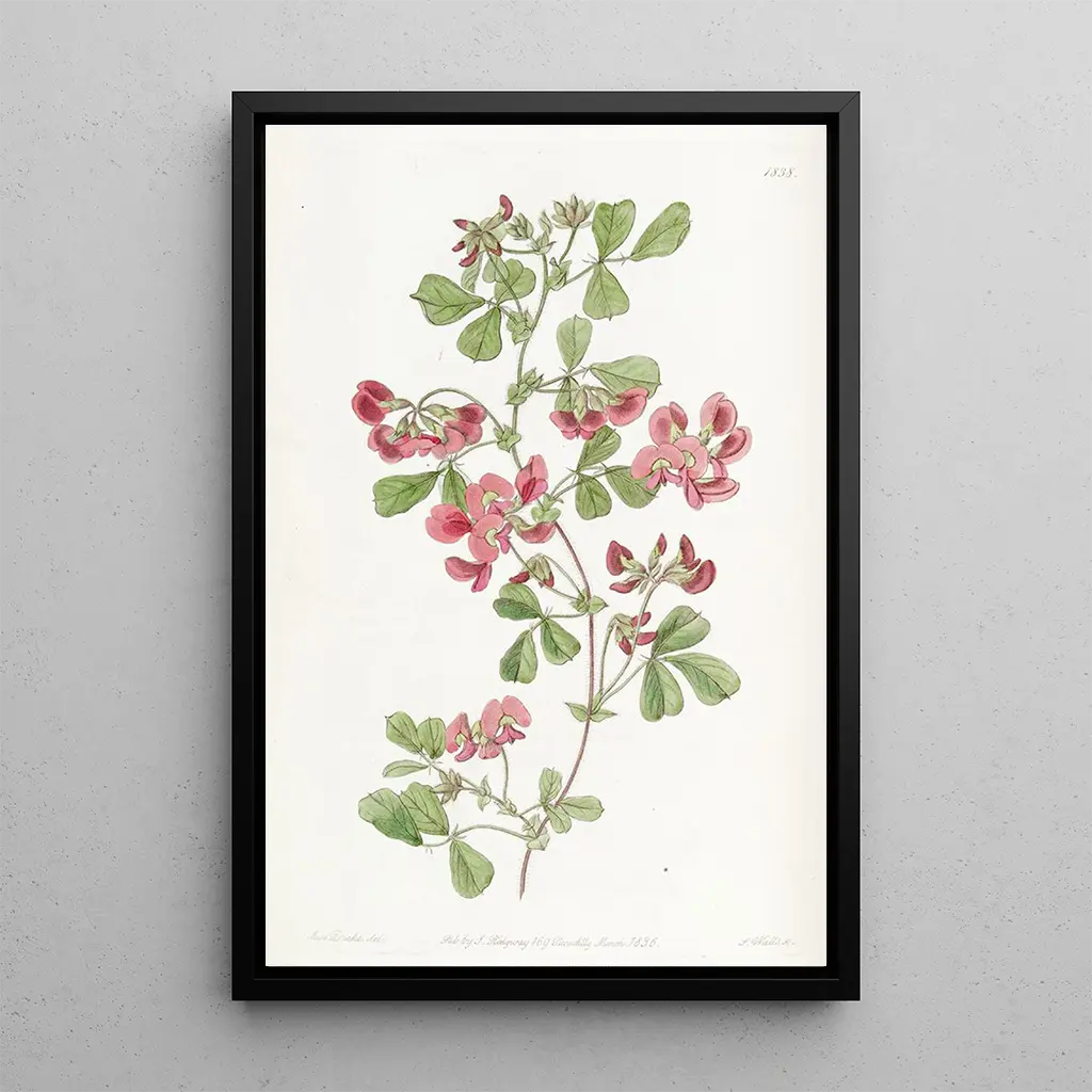 La stampa d'arte della Kennedya à feuilles lisses, opera di Sydenham Edwards, ci immerge in un universo botanico di grande delicatezza. Le tonalità vibranti di verde e rosso si mescolano armoniosamente, mentre i dettagli minuziosi delle foglie e dei fiori rivelano una padronanza tecnica impressionante. Edwards, in qualità di illustratore botanico, riesce a catturare l'essenza stessa di questa pianta, evocando un'atmosfera allo stesso tempo serena e vivace. Ogni colpo di pennello sembra raccontare una storia, invitando lo spettatore a meravigliarsi davanti alla bellezza della natura.