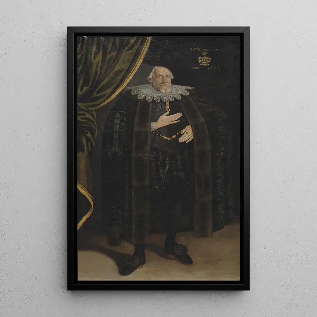 Klas Bielke de Ker : un ritratto di eleganza e nobiltà Il quadro "Klas Bielke de Ker" raffigura un personaggio in maestà, vestito con cura ed eleganza. I dettagli minuziosi del suo costume, così come l'espressione riflessiva del suo volto, testimoniano una padronanza eccezionale della pittura. I colori ricchi e profondi, associati a un'illuminazione sottile, creano un'atmosfera sia solenne che intima. Questo ritratto non si limita a rappresentare un individuo; cattura l'essenza di un'epoca in cui la nobiltà era sinonimo di potere e prestigio, invitando lo spettatore a interrogarsi sull'identità e lo status del soggetto. Jacob Heinrich Elbfas : un ritrattista del XVII secolo Jacob Heinrich Elbfas, attivo nel XVII secolo, è riconosciuto per i suoi ritratti che combinano realismo e raffinatezza. Cresciuto in un contesto artistico ricco, è stato influenzato dai grandi maestri del suo tempo, in particolare dagli artisti fiamminghi e olandesi. Le sue opere si distinguono per l'attenzione ai dettagli e la capacità di trasmettere la personalità dei soggetti. Elbfas è riuscito a catturare lo spirito della sua epoca, segnata da cambiamenti sociali e politici, e i suoi ritratti rimangono testimonianze preziose della nobiltà e della borghesia del suo tempo, offrendo uno sguardo affascinante sulla storia. Una riproduzione decorativa con molteplici virtù La stampa d'arte del quadro "Klas Bielke de Ker" è un elemento decorativo che apporterà un tocco di raffinatezza al vostro interno. Che sia in un ufficio, un salotto o una sala espositiva, questa tela attira l'occhio e suscita ammirazione. La qualità di stampa garantisce una fedeltà notevole alle sfumature e ai dettagli dell'opera originale, arricchendo così la vostra decorazione. Scegliendo questa stampa d'arte, investite in un elemento decorativo che unisce storia, arte ed eleganza, creando un'atmosfera raffinata e accogliente nel vostro spazio di vita.