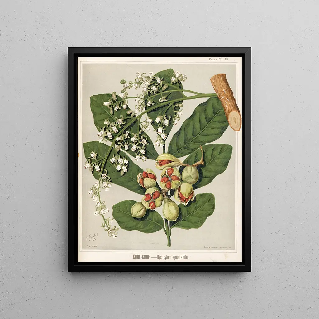 In questa opera, Sarah Featon mette in luce il KoheKohe, o Dysoxylum spectabile, un albero maestoso della Nuova Zelanda. Con una cura dei dettagli notevole, Featon cattura la bellezza di questo albero e i suoi fiori spettacolari. Il suo stile artistico, che combina precisione e sensibilità, rende omaggio alla ricchezza della flora neozelandese. Le illustrazioni di Featon sono non solo rappresentazioni botaniche, ma anche opere d'arte che arricchiscono i nostri interni moderni. Portano un tocco di esotismo e natura, integrandosi armoniosamente in vari stili di decorazione. Queste opere sono ideali per chi desidera creare un ambiente rilassante e ispirante. Scopri questa illustrazione su Artem Legrand e lasciati conquistare dalla magia della flora neozelandese.