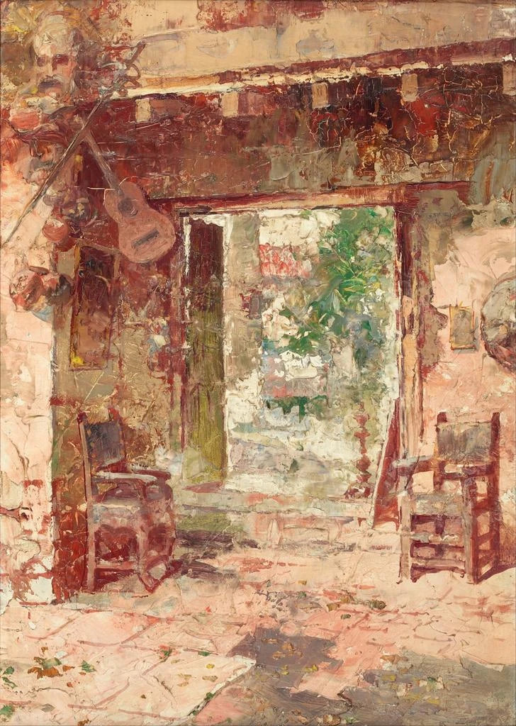 "La boutique des antiquaires à Cusco" di Teófilo Castillo ci immerge in un universo ricco di storia e cultura. Questa tela vibrante di colori caldi e texture evoca l’autenticità dei mercati peruviani, dove ogni oggetto racconta una storia. I dettagli minuziosi delle antichità, dai tessuti colorati alle ceramiche antiche, testimoniano l’eredità artigianale della regione. L’atmosfera calda e accogliente di questa scena invita lo spettatore a esplorare i tesori nascosti della boutique, celebrando la bellezza dell’artigianato locale.