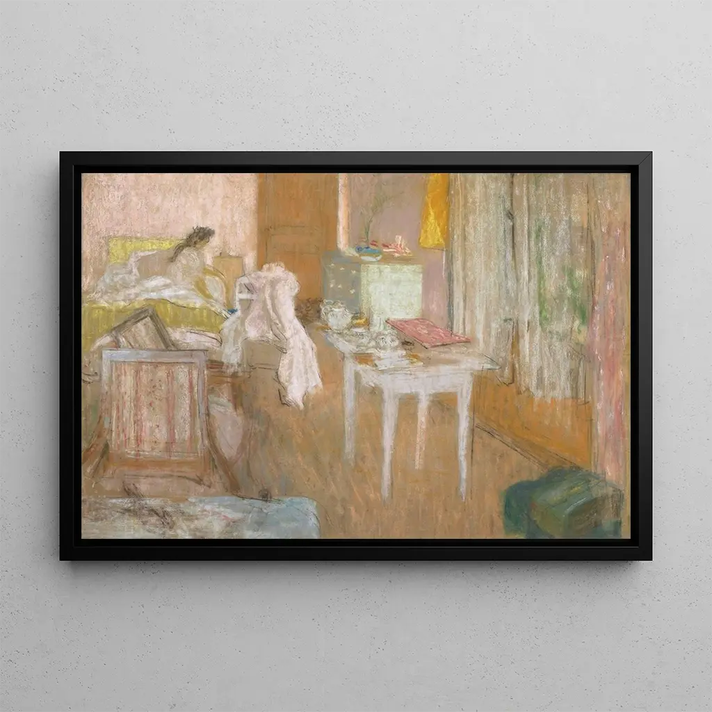 La chambre rose : un rifugio di dolcezza e intimità La chambre rose di Édouard Vuillard evoca un'atmosfera calda e intima, dove le tonalità morbide di rosa e beige si intrecciano per creare uno spazio accogliente. La composizione, centrata su una figura femminile, invita alla contemplazione e alla rêverie. I dettagli minuziosi dei tessuti e degli oggetti quotidiani testimoniano una tecnica curata, dove il tocco impressionista si mescola a un approccio decorativo. L'opera trasmette una serenità che trasporta lo spettatore in un universo pacifico, dove ogni elemento sembra raccontare una storia personale. Édouard Vuillard : un maestro dei Nabis e dell'intimità Édouard Vuillard, membro del gruppo dei Nabis, ha segnato la fine del XIX secolo e l'inizio del XX secolo con il suo stile unico, mescolando impressionismo e simbolismo. Influenzato da artisti come Pierre Bonnard e Paul Sérusier, Vuillard si è concentrato sulla rappresentazione della vita quotidiana e degli interni, catturando la luce e l'atmosfera con una sensibilità notevole. Il suo lavoro, spesso incentrato su temi domestici, ha contribuito a ridefinire la pittura di genere, conferendogli un'importanza duratura nella storia dell'arte. La chambre rose è un esempio perfetto del suo approccio, dove l'intimità e la bellezza del quotidiano sono sublimati. Una riproduzione decorativa con molteplici vantaggi La riproduzione di La chambre rose è una scelta ideale per abbellire il tuo soggiorno, ufficio o camera da letto. La sua palette morbida e rilassante porta un tocco di serenità in qualsiasi spazio, aggiungendo al contempo una dimensione artistica. La qualità della riproduzione garantisce fedeltà ai colori e ai dettagli, permettendo di apprezzare appieno l'opera originale. Integrando questa stampa d'arte nella tua decorazione, offri al tuo interno un tocco elegante e raffinato, celebrando l'eredità di un artista importante nella storia dell'arte.