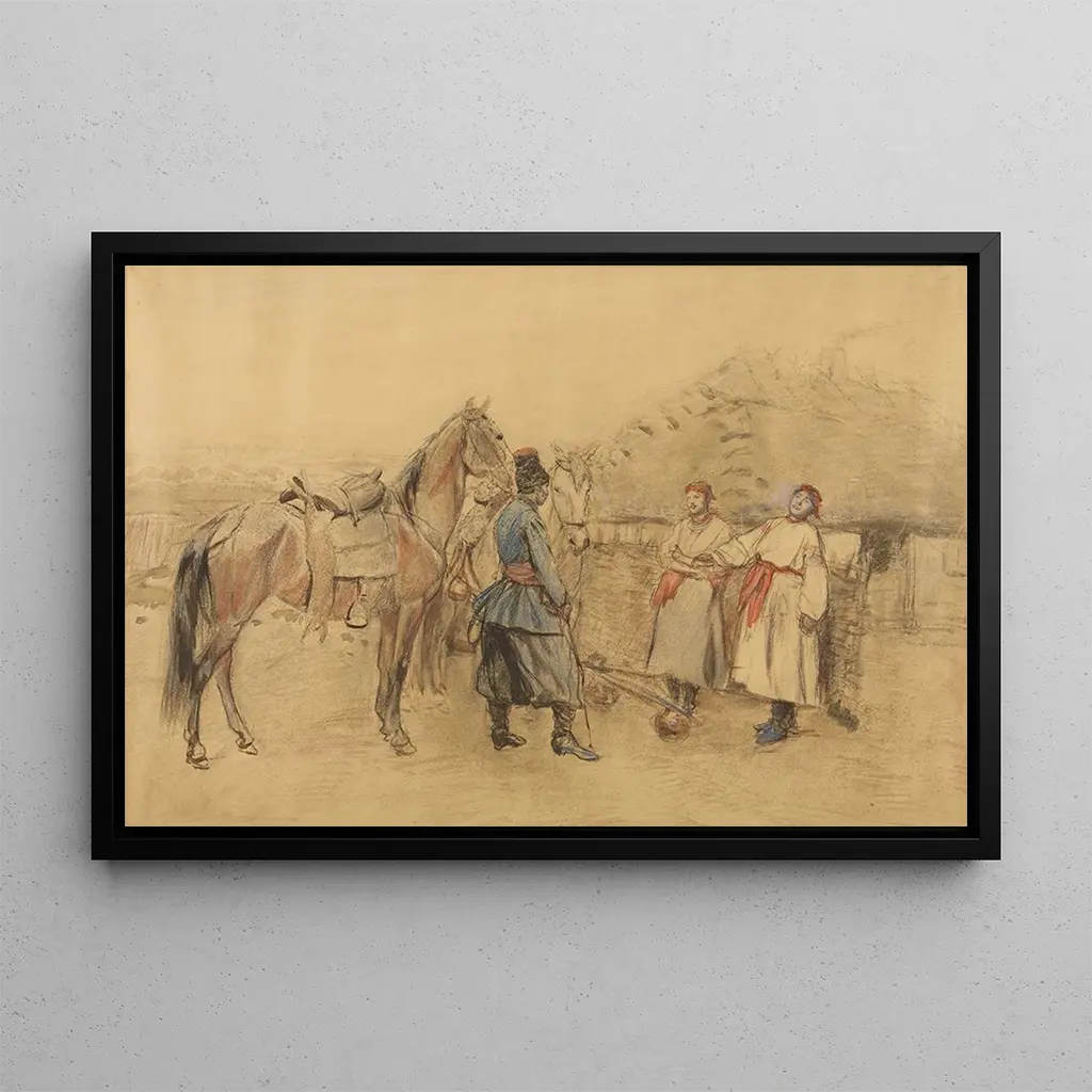 La Cour : un dipinto vibrante di vita rurale La Cour di Józef Chełmoński è un'opera che ci immerge nell'animazione di una scena della vita contadina. Con colori caldi e tocchi di luce, l'artista riesce a catturare l'essenza della quotidianità rurale. I personaggi, vestiti con costumi tradizionali, si occupano delle faccende in un'atmosfera di convivialità e semplicità. La tecnica di Chełmoński, mescolando realismo e impressionismo, conferisce a questa tela una profondità e una texture che invitano alla contemplazione. Ogni dettaglio, dai volti sorridenti agli animali in movimento, racconta una storia, rendendo questa stampa d'arte particolarmente vivida. Józef Chełmoński : un maestro del paesaggio polacco Józef Chełmoński, nato nel 1849, è uno dei pittori più emblematici della Polonia, riconosciuto per la sua capacità di rappresentare la natura e la vita rurale con grande sensibilità. Influenzato dal movimento realista e dai paesaggi impressionisti, ha saputo sviluppare uno stile unico che valorizza le tradizioni e il patrimonio polacco. La sua carriera si estende alla fine del XIX secolo, un periodo in cui l'arte europea attraversa profondi cambiamenti. Chełmoński è riuscito a catturare l'anima del suo paese attraverso le sue opere, diventando una figura imprescindibile nella storia dell'arte polacca. Un'acquisizione decorativa con molteplici vantaggi La riproduzione di La Cour è un pezzo decorativo che saprà arricchire il vostro interno, sia in un salotto, uno studio o una camera da letto. La qualità di stampa e la fedeltà all'opera originale garantiscono un'attrattiva estetica indiscutibile. Integrando questa tela nella vostra decorazione, portate un tocco di calore e convivialità nel vostro spazio. La scena animata invita alla rêverie e alla nostalgia, celebrando la bellezza della vita semplice. Scegliere questa stampa d'arte significa optare per un'opera che racconta una storia e che abbellisce la vostra quotidianità.