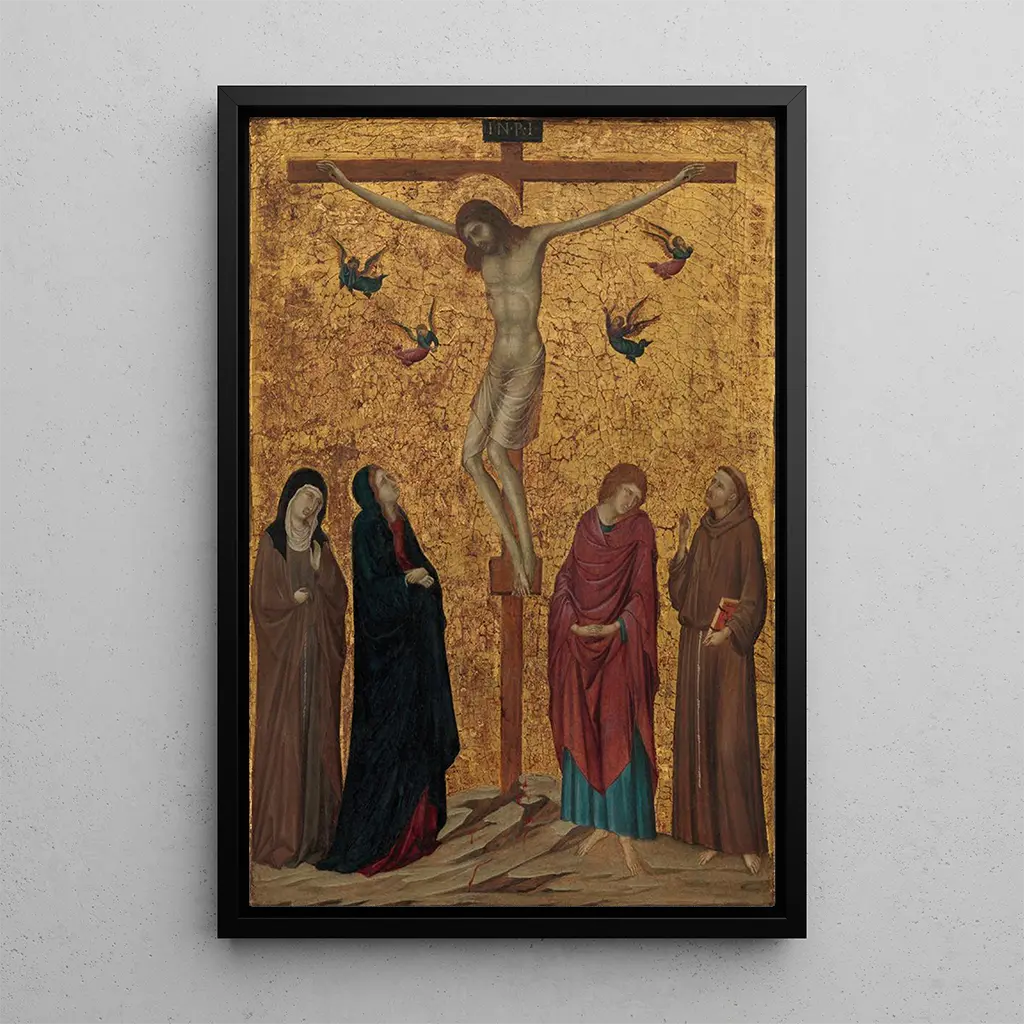 Ugolino da Siena, attivo nel XIV secolo, è un rappresentante principale della scuola senese. Influenzato dalle tradizioni bizantine e dalle innovazioni della pittura italiana, ha saputo sviluppare uno stile unico, combinando rigore ed espressività. Le sue opere, spesso cariche di simbolismo religioso, testimoniano un'epoca in cui l'arte sacra giocava un ruolo centrale nella vita quotidiana. La stampa d'arte della Crocifissione illustra perfettamente il suo talento nel tradurre emozioni profonde attraverso figure stilizzate e composizioni armoniose. Il suo lascito perdura, ispirando numerosi artisti nel corso dei secoli.