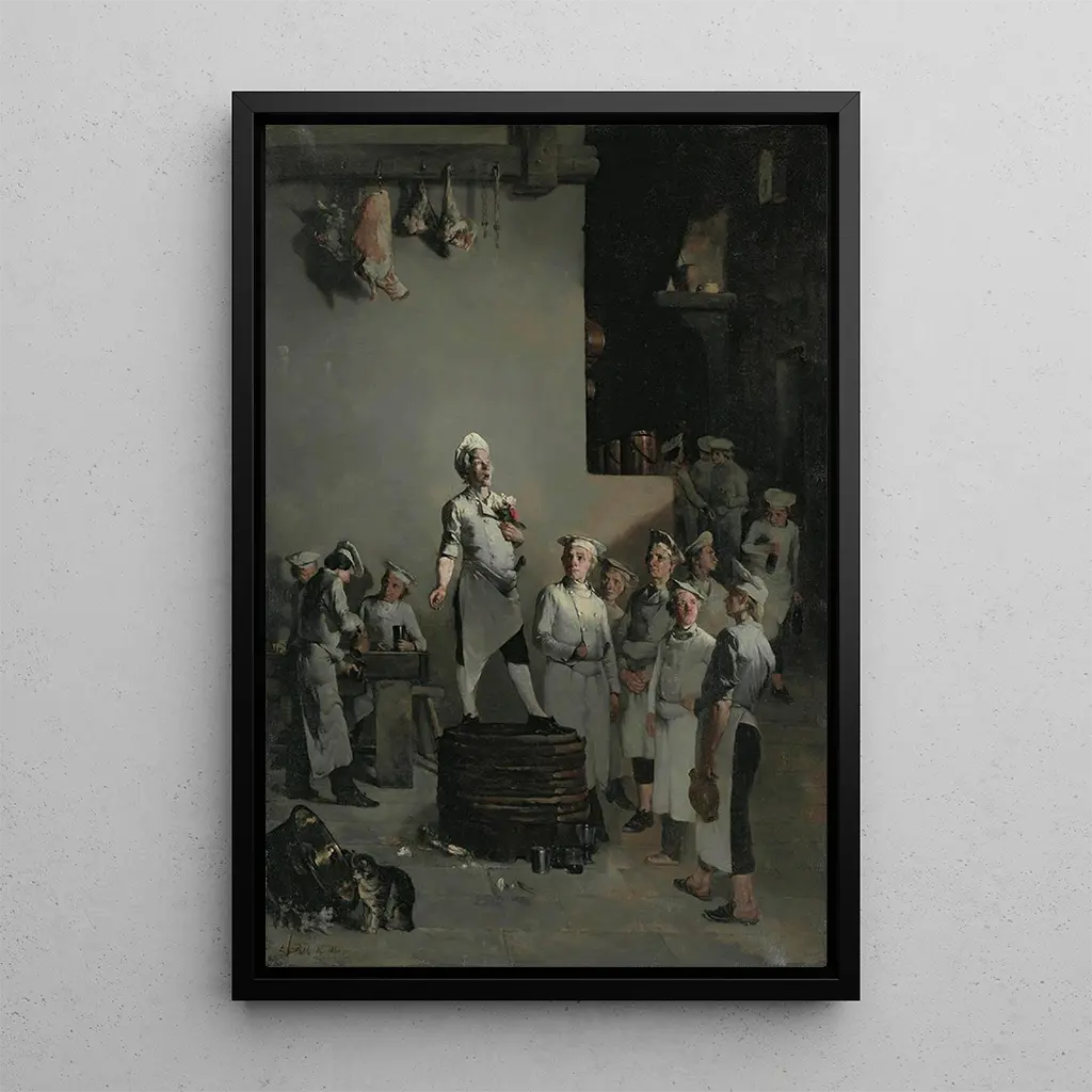 Théodule Ribot, pittore francese del XIX secolo, è conosciuto per le sue rappresentazioni di scene della vita quotidiana e delle tradizioni popolari. Influenzato dal realismo, ha saputo catturare i momenti semplici ma significativi della vita delle persone. La sua carriera è stata segnata da un impegno a rappresentare la società del suo tempo, mettendo in luce le usanze e le festività. "la festa dello chef" illustra perfettamente il suo desiderio di celebrare la cultura popolare, offrendo anche uno sguardo sui valori e sugli stili di vita del suo tempo. La sua opera rimane un punto di riferimento per chi si interessa alla storia sociale e artistica della Francia.