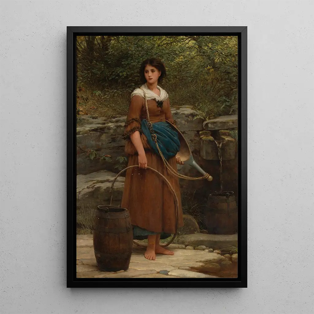 George Dunlop Leslie, attivo alla fine del XIX secolo, è un pittore britannico influenzato dal movimento prerafaelita, che promuoveva un ritorno alla natura e alla bellezza dei dettagli. Formatosi alla Royal Academy, ha saputo catturare scene della vita quotidiana con una sensibilità unica. Le sue opere, spesso popolate da figure femminili, riflettono una fascinazione per la bellezza e la semplicità. La Jeune Fille Brune si inserisce in questa tradizione, mescolando romanticismo e realismo per creare un'atmosfera intrisa di poesia. Il suo lavoro ha segnato la sua epoca e continua a ispirare gli appassionati d'arte.