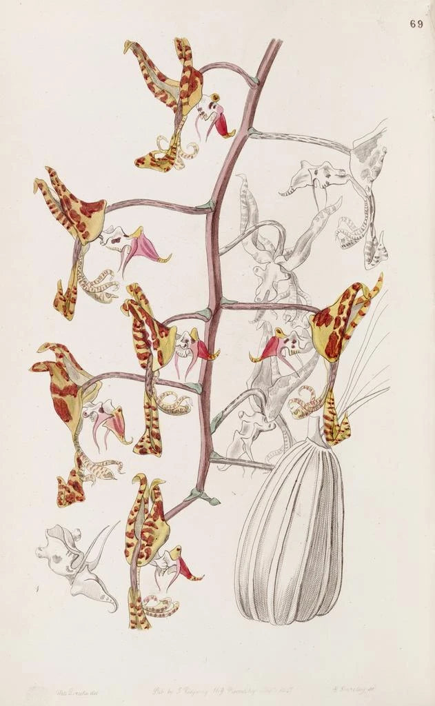 Sydenham Edwards, illustrateur botanique du début du XIXe siècle, a marqué son époque par ses œuvres d’une grande précision. Élevé dans un contexte où l’exploration scientifique et l’art se rejoignaient, il a su capturer l’essence des plantes avec une approche à la fois artistique et scientifique. Ses illustrations, souvent publiées dans des traités botaniques, ont joué un rôle crucial dans la documentation de la flore. La gongora tricolore tachetée témoigne de son talent exceptionnel et de son engagement à représenter la beauté de la nature avec une fidélité inégalée.