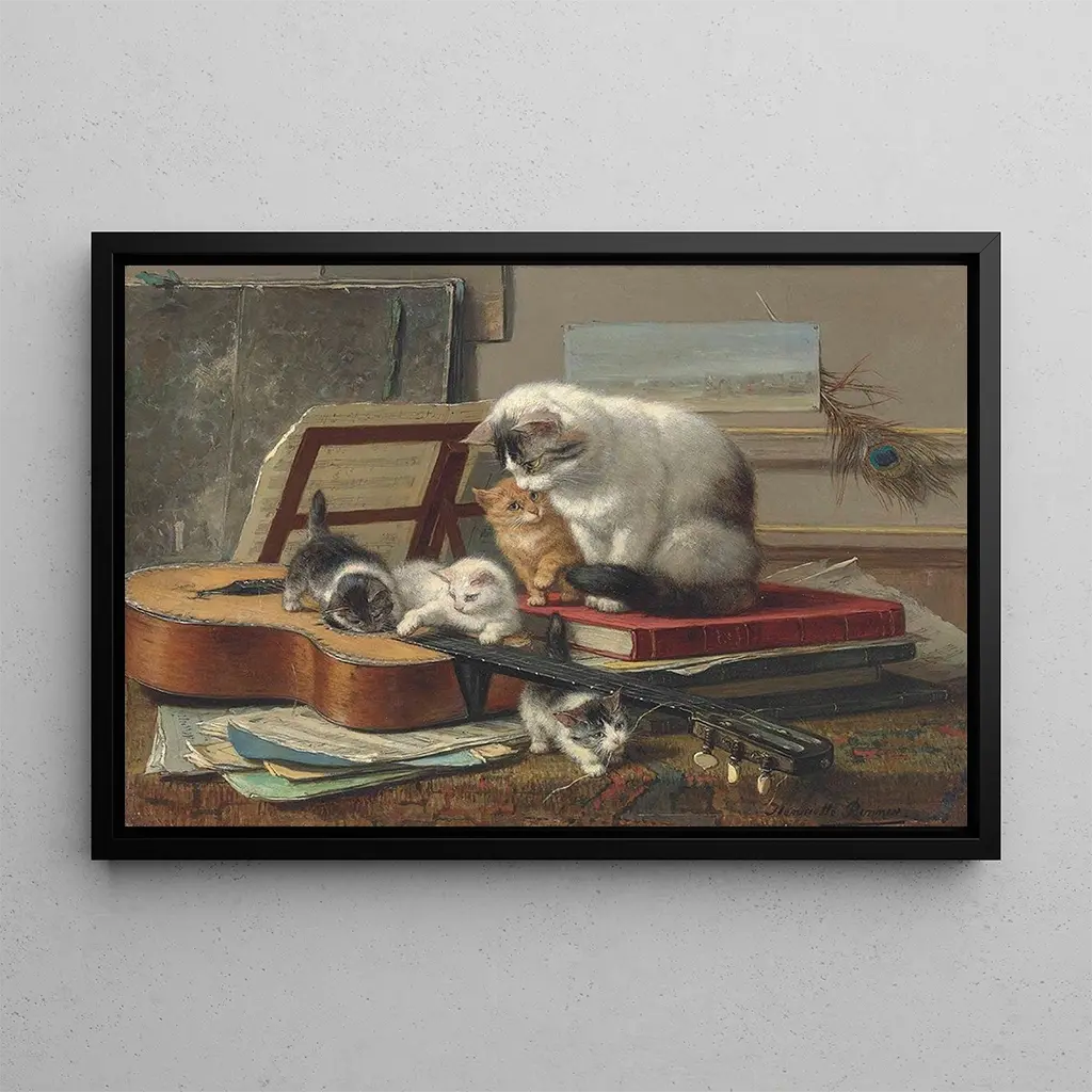 La lezione di musica: un momento di dolcezza e di armonia La lezione di musica di Henriette Ronner-Knip è un'opera che cattura un istante di tenerezza e complicità tra una giovane musicista e il suo insegnante. I colori delicati e le sfumature raffinate di questa stampa d'arte evocano un'atmosfera intima, dove la luce naturale filtra attraverso una finestra, illuminando i volti dei personaggi. La tecnica dell'artista, che mescola realismo e impressionismo, dà vita a ogni dettaglio, dalle note di musica che fluttuano nell'aria alle espressioni concentrate dei protagonisti. Questa scena, intrisa di serenità, invita alla contemplazione e all'apprezzamento della bellezza dell'arte musicale. Henriette Ronner-Knip: una pioniera della pittura animale e delle scene di genere Henriette Ronner-Knip, nata nel 1821 ad Amsterdam, è un'artista olandese riconosciuta per le sue raffinate rappresentazioni della vita domestica e degli animali. Influenzata dal movimento artistico del XIX secolo, ha saputo ritagliarsi uno spazio in un mondo dominato da artisti maschili. La sua carriera, che si estende per diversi decenni, è caratterizzata da uno stile unico che combina finezza e realismo, permettendole di diventare una figura importante della sua epoca. La lezione di musica illustra perfettamente il suo talento nel catturare momenti di vita pieni di emozione, mettendo in risalto il suo amore per la musica e l'armonia. Una riproduzione decorativa con molteplici vantaggi La riproduzione di La lezione di musica è una scelta ideale per abbellire il vostro interno, che si tratti di un soggiorno, di un ufficio o di una camera da letto. Con la sua qualità di stampa eccezionale e la fedeltà ai dettagli dell'opera originale, questa stampa d'arte apporterà un tocco di eleganza e raffinatezza alla vostra decorazione. Il suo fascino estetico, rafforzato dall'atmosfera pacifica che trasmette, la rende un elemento decorativo capace di conquistare i vostri ospiti e arricchire il vostro spazio vitale. Regalatevi questa tela per celebrare l'arte e la musica nella vostra quotidianità.