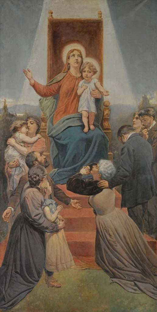 La Madone des nécessiteux, opera toccante di Hermann Eichler, evoca una profonda umanità attraverso il suo soggetto centrale. La composizione mette in scena una Vergine Maria protettrice, circondata da bambini e persone bisognose, il tutto immerso in una luce dolce e calda. I colori pastello, dominati da tonalità di blu e rosa, creano un'atmosfera rasserenante, quasi confortante. La tecnica dell'artista, mescolando realismo e tocchi impressionisti, invita a una contemplazione attenta, rivelando i dettagli delicati dei volti e degli abiti. Questa tela, per il suo messaggio universale, tocca il cuore e ricorda l'importanza della solidarietà.