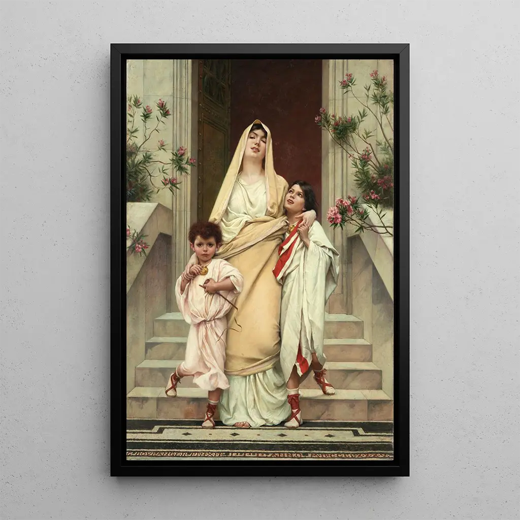 "La madre dei Gracchi" di Gustave Boulanger è un'opera toccante che mette in luce la figura materna in un contesto storico ricco. La composizione, centrata su una donna con uno sguardo determinato, evoca la forza e la resilienza. I colori terrosi e i dettagli minuziosi degli abiti storici immergono lo spettatore nell'antica Roma, mentre l'espressione della madre trasmette un'emozione palpabile. Questa tela invita a riflettere sul ruolo delle donne nella storia, celebrando al contempo la loro influenza silenziosa ma potente.