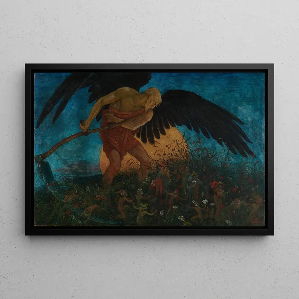 La Mort du Faucheur : un tableau évocateur de la nature humaine La Mort du Faucheur, œuvre emblématique de Walter Crane, dépeint une scène poignante où la mort, personnifiée par un faucheur, s'apprête à récolter les âmes. Les couleurs sombres et les nuances de terre créent une atmosphère mélancolique, tandis que la lumière se fraie un chemin à travers les ombres, révélant la beauté tragique de la vie. La technique de Crane, mêlant le détail minutieux à une certaine abstraction, invite le spectateur à une réflexion profonde sur la mortalité et le passage du temps. Chaque élément de la composition semble chargé de signification, rendant cette stampa d'arte captivante et intemporelle. Walter Crane : un maître du mouvement Arts & Crafts Walter Crane, figure majeure du mouvement Arts & Crafts, a su allier art et artisanat tout au long de sa carrière. Né en 1845, il a été influencé par les préraphaélites et les idées de John Ruskin, prônant un retour à l'artisanat et à la beauté naturelle. Son travail, souvent axé sur des thèmes mythologiques et sociaux, a marqué la fin du XIXe siècle et le début du XXe siècle. La Mort du Faucheur illustre parfaitement son style unique, alliant une narration visuelle riche à une esthétique raffinée. Crane a également été un fervent défenseur de l'éducation artistique, contribuant à façonner la perception de l'art dans la société de son époque. Une acquisition décorative aux multiples atouts Opter pour la stampa d'arte de La Mort du Faucheur, c'est choisir une toile qui enrichira votre intérieur avec une touche de réflexion et d'élégance. Que ce soit dans un salon, un bureau ou une chambre, ce tableau s'intègre harmonieusement dans divers styles de décoration, apportant une profondeur visuelle et une ambiance contemplative. La qualité de la stampa d'arte garantit une fidélité aux détails et aux couleurs d'origine, tout en offrant un attrait esthétique indéniable. Ce tableau devient ainsi un point focal de votre espace, suscitant l'admiration et les discussions autour de son message poignant sur la vie et la mort.