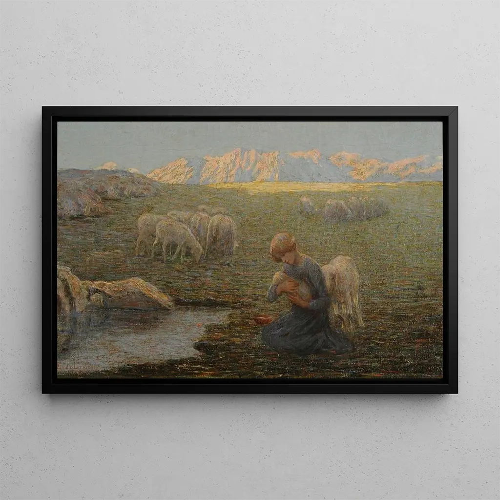 La brebis malade : una scena intrisa di tenerezza La riproduzione di La brebis malade di Emilio Longoni ci immerge in un'atmosfera di dolcezza e compassione. Quest'opera, realizzata con colori caldi e sfumature delicate, mette in evidenza una pecora ferita, circondata da figure umane che esprimono una profonda sollecitudine. La tecnica dell'artista, mescolando realismo e impressionismo, crea un'atmosfera toccante, dove la luce svolge un ruolo essenziale, illuminando i volti e i dettagli del paesaggio. La composizione, centrata sull'animale, evoca un forte legame tra l'uomo e la natura, invitando lo spettatore a percepire l'emozione palpabile di questa scena. Emilio Longoni : un maestro del realismo sociale Emilio Longoni, pittore italiano del XIX secolo, è riconosciuto per il suo impegno artistico a favore delle classi lavoratrici. Influenzato dal movimento realista, cerca di catturare la vita quotidiana e le lotte delle persone comuni. Longoni è stato attivo durante un periodo di sconvolgimenti sociali in Italia, che hanno plasmato la sua opera. I suoi dipinti, spesso intrisi di umanità, testimoniano una sensibilità verso i più svantaggiati. La stampa d'arte di La brebis malade si inserisce in questa tradizione, illustrando non solo un momento di vita, ma anche una riflessione sulla vulnerabilità e sulla solidarietà. Il suo stile, allo stesso tempo commovente e accessibile, ha lasciato un'impronta duratura nella storia dell'arte. Una soluzione decorativa con molteplici vantaggi La riproduzione di La brebis malade è un pezzo decorativo che saprà arricchire qualsiasi ambiente, che si tratti di un soggiorno, di un ufficio o di una camera da letto. La qualità di stampa fedele e il suo fascino estetico ne fanno una scelta ideale per chi desidera aggiungere un tocco di umanità alla propria decorazione. Integrando questa stampa d'arte, offri al tuo spazio un'atmosfera calda e accogliente, stimolando conversazioni sull'arte e sulla compassione. Quest'opera, allo stesso tempo bella e significativa, è un invito alla riflessione e all'empatia, rendendola un prezioso complemento alla tua collezione.
