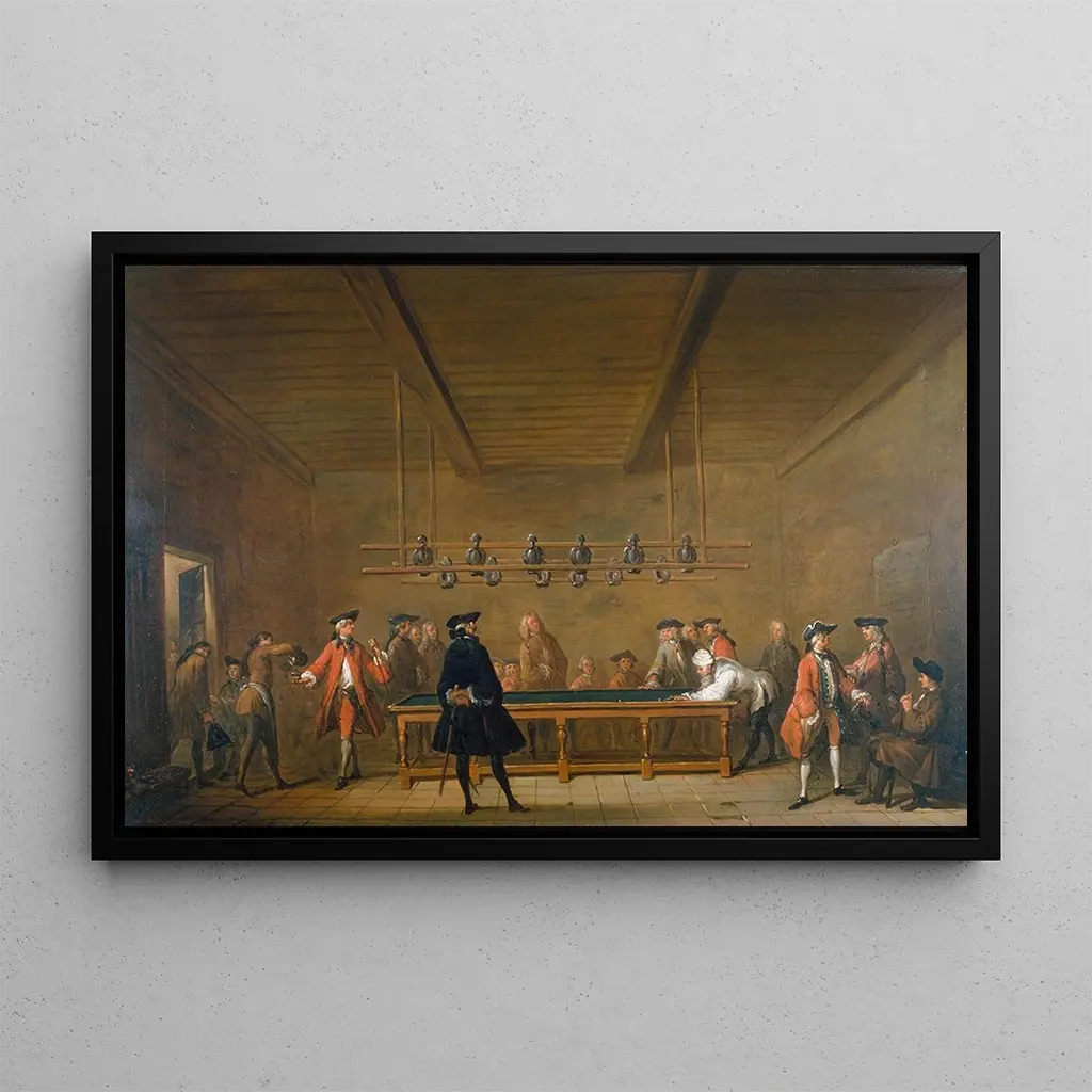 La Partita a biliardo: un momento di vita congelato nel tempo La Partita a biliardo, opera emblematica di Jean Siméon Chardin, ci immerge in una scena intima dove il gioco e la contemplazione si incontrano. La composizione è accuratamente orchestrata, mettendo in evidenza personaggi assorbiti dalla loro attività. I colori caldi e terrosi, tipici dello stile di Chardin, creano un'atmosfera conviviale e accogliente. La luce soffusa illumina subtilmente i volti, accentuando l'intensità dell'istante. Questa tela, realizzata con una tecnica di pittura ad olio perfezionata, invita lo spettatore a immergersi in questo momento di condivisione e convivialità, dove ogni dettaglio racconta una storia. Jean Siméon Chardin: il maestro della vita quotidiana Jean Siméon Chardin, pittore francese del XVIII secolo, è riconosciuto per la sua capacità di catturare la bellezza delle scene della vita quotidiana. Influenzato dal movimento rococò, Chardin si allontana dai temi grandiosi per concentrarsi su soggetti semplici e accessibili. La sua carriera, segnata da un riconoscimento tardivo, è stata costellata di successi, tra cui opere come La Partita a biliardo. Chardin è riuscito a integrare una profondità emotiva nelle sue composizioni, trasformando momenti ordinari in veri e propri capolavori. Il suo stile, caratterizzato da un'attenzione meticolosa ai dettagli e da una palette di colori delicati, ha lasciato un'impronta indelebile nella storia dell'arte. Un acquisto decorativo con molteplici vantaggi La riproduzione di La Partita a biliardo è una scelta decorativa ideale per arricchire il vostro interno, che sia in un salotto, un ufficio o una camera da letto. La qualità della riproduzione garantisce una fedeltà notevole all'opera originale, permettendo di godere della bellezza di questa scena senza tempo. L'attrattiva estetica di questa tela risiede nella sua capacità di evocare emozioni e di suscitare conversazioni. Integrando questo quadro nella vostra decorazione, portate un tocco di eleganza e cultura, celebrando l'arte della vita quotidiana, così cara a Chardin.
