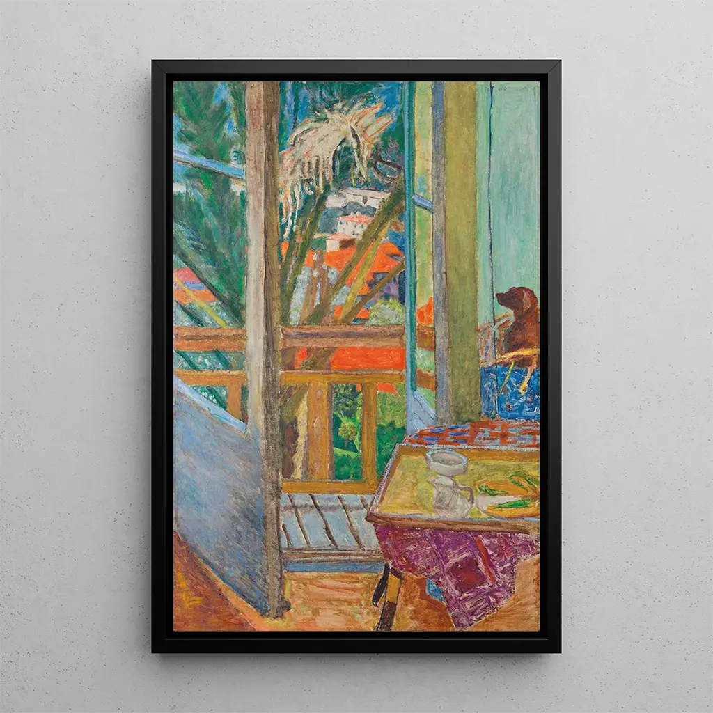In "La porte-fenêtre avec chien", Pierre Bonnard cattura un momento di serenità in cui la luce naturale inonda lo spazio. I colori vivaci e caldi, tipici del suo stile, creano un’atmosfera accogliente e familiare. Il cane, simbolo di lealtà e comfort, sembra rilassarsi in questa atmosfera pacifica, mentre la porta-finestra aperta invita il mondo esterno a entrare. La tecnica di Bonnard, che mescola impressionismo e post-impressionismo, si manifesta attraverso pennellate delicate e una composizione armoniosa, rendendo questa tela una vera e propria invito alla contemplazione.