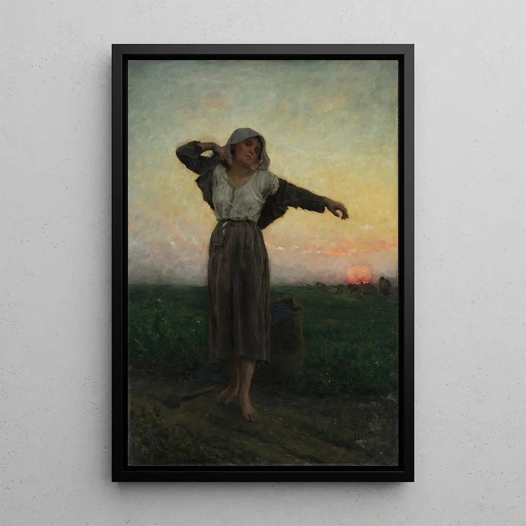 Jules Breton, né en 1827, est un artiste français emblématique du mouvement réaliste. Influencé par les traditions de la peinture flamande et par les scènes de la vie rurale, il se consacre à représenter la condition paysanne avec une grande sensibilité. Son œuvre s'inscrit dans le courant naturaliste du XIXe siècle, où l'authenticité et la vérité des sujets sont primordiales. Breton a su immortaliser des moments de la vie quotidienne, faisant de lui un témoin précieux de son époque. "La glaneuse fatiguée" est l'une de ses œuvres les plus célèbres, illustrant son engagement envers la représentation des classes laborieuses.