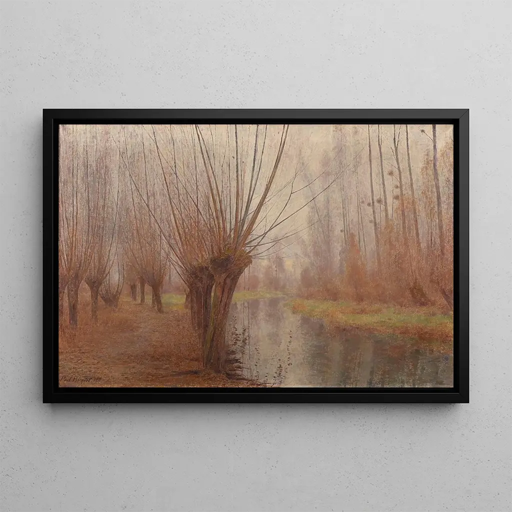 In questa stampa d'arte di "La Vesle in novembre Jonchery-sur-Vesle", Paul Bocquet ci offre una visione poetica di un paesaggio autunnale. Le sfumature di grigio e marrone dominano la tela, evocando la dolcezza malinconica della stagione. Gli alberi spogli si riflettono nelle acque calme della Vesle, creando un'atmosfera di serenità e contemplazione. La tecnica impressionista di Bocquet permette di percepire la brezza leggera e il sussurro dell'acqua, trasportando lo spettatore in un momento sospeso. Ogni colpo di pennello sembra catturare l'essenza effimera della natura, invitando a una silenziosa introspezione.