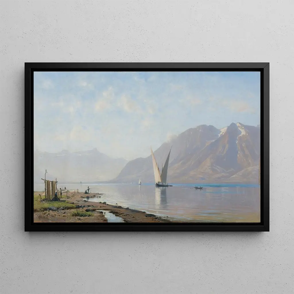 Lac Léman : uno specchio di serenità e bellezza naturale Il quadro "Lac Léman" di Auguste Veillon invita a una contemplazione rasserenante dei paesaggi svizzeri. La tela si apre con una palette di blu e verdi, evocando i riflessi del cielo sulle acque calme del lago. Le delicate pennellate catturano la luce naturale, creando un'atmosfera di tranquillità e dolcezza. Le montagne sullo sfondo, maestose e imponenti, contrastano con la serenità delle acque, offrendo una composizione armoniosa. Quest'opera, al tempo stesso realistica e poetica, trasporta lo spettatore in un momento sospeso, dove la natura si rivela in tutta la sua magnificenza. Auguste Veillon : un testimone dell'impressionismo svizzero Auguste Veillon, pittore svizzero del XIX secolo, è spesso associato all'ecole impressionnista. Influenzato dai paesaggi del suo paese natale, ha saputo catturare la luce e i colori della natura con una sensibilità unica. La sua carriera, sebbene meno conosciuta di quella di alcuni dei suoi contemporanei, ha contribuito all'emergere di un nuovo approccio artistico, valorizzando la bellezza dei paesaggi svizzeri. Veillon è stato anche un membro attivo della comunità artistica, partecipando a numerose esposizioni e condividendo la sua passione per la pittura con i colleghi. La sua opera "Lac Léman" è un esempio perfetto del suo talento nell'immortalare la natura. Una riproduzione decorativa con molteplici vantaggi La riproduzione del quadro "Lac Léman" di Auguste Veillon è un pezzo decorativo ideale per abbellire la vostra casa. Che sia in un soggiorno, in uno studio o in una camera da letto, questa stampa d'arte aggiunge un tocco di serenità ed eleganza. La qualità della riproduzione garantisce fedeltà ai colori e ai dettagli dell'opera originale, permettendo di godere del suo fascino estetico quotidianamente. Integrando quest'opera nella vostra decorazione, invitate non solo la bellezza della natura nella vostra casa, ma anche un pezzo della storia dell'arte svizzera, arricchendo così il vostro spazio vitale.