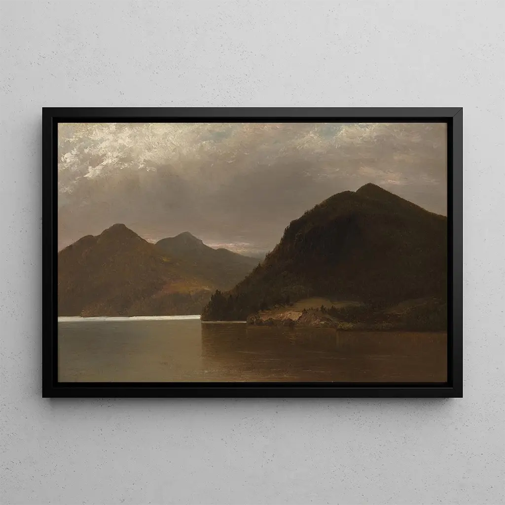 "Lac George" è un'opera emblematico di John Frederick Kensett, che evoca la tranquillità di un paesaggio lacustre. Le sfumature di blu e di verde, associate a tocchi di luce dorata, creano un'atmosfera rilassante e contemplativa. La tecnica di Kensett, che utilizza la stampa d'arte ad olio per catturare la luce e l'acqua, dà vita a questa stampa d'arte, dove ogni riflesso sulla superficie del lago sembra invitare alla meditazione. La composizione equilibrata, con elementi naturali accuratamente disposti, permette allo spettatore di percepire la pace che emana da questo luogo idilliaco.