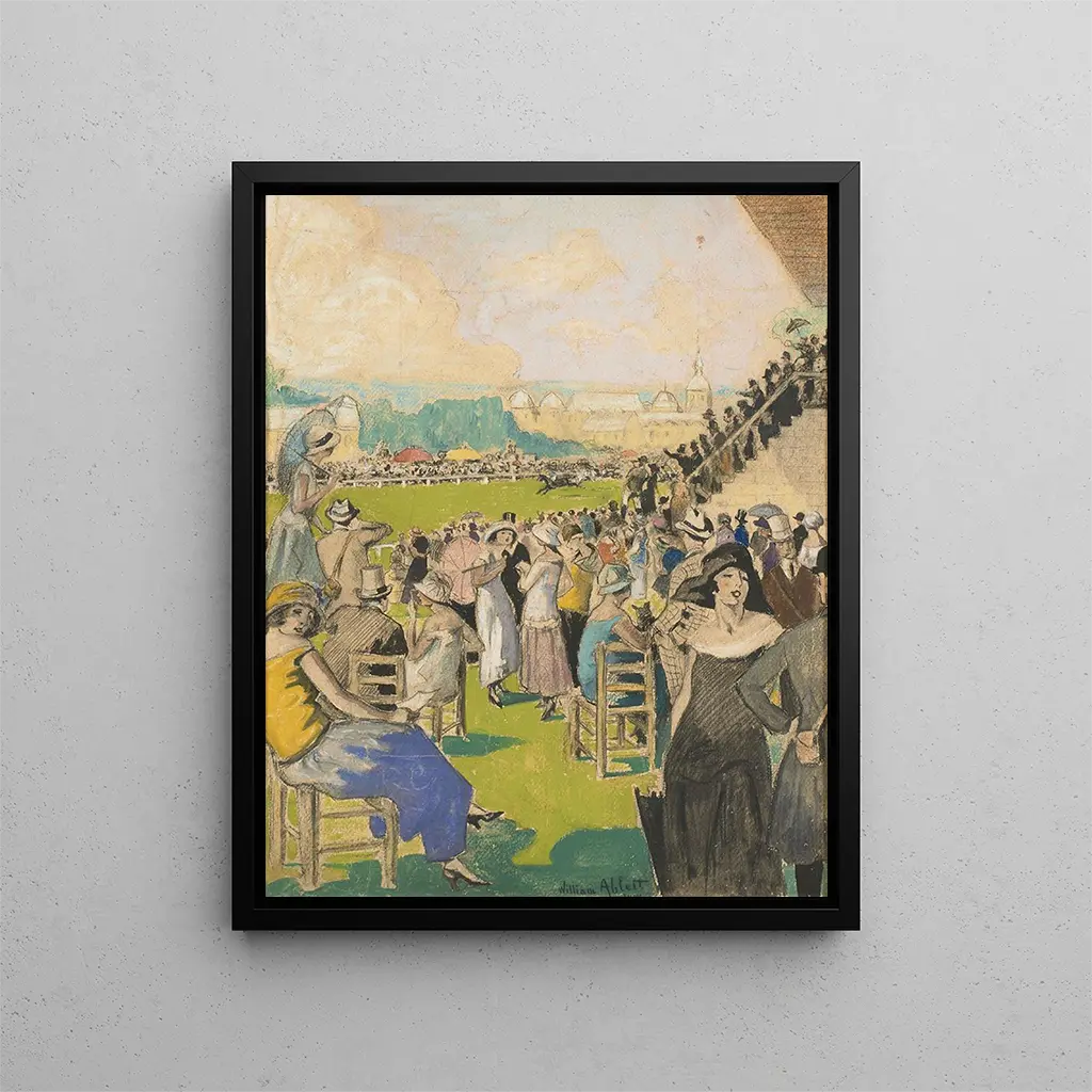 Le Corse a Chantilly di William Albert Ablett immerge lo spettatore nel cuore dell’eleganza e del raffinato mondo delle corse ippiche francesi dell’inizio del XX secolo.