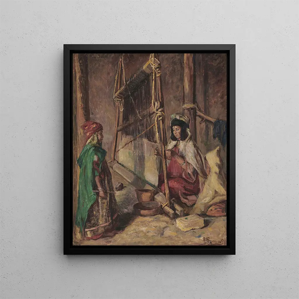 René Tourniol, artista francese del XX secolo, è conosciuto per le sue rappresentazioni della vita quotidiana e delle scene di genere. In 'Le filatrici, Bou Sada', cattura un momento di lavoro artigianale, mettendo in luce la bellezza del processo creativo e l'importanza della tradizione. Le figure femminili, impegnate nel loro compito, sono rappresentate con una sensibilità che sottolinea la loro forza e determinazione. Tourniol utilizza una palette di colori caldi per creare un'atmosfera intima e accogliente, evocando il legame profondo tra l'uomo e il suo ambiente. Quest'opera, pur essendo radicata in una realtà sociale, trova risonanza in interni moderni che valorizzano l'autenticità e l'abilità artigianale. Immergiti in questo universo ricco di storia ed esplora la sua stampa d'arte su Artem Legrand.