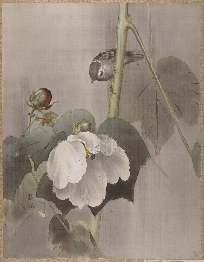 Malva rosa di cotone sotto la pioggia - Okada Baison