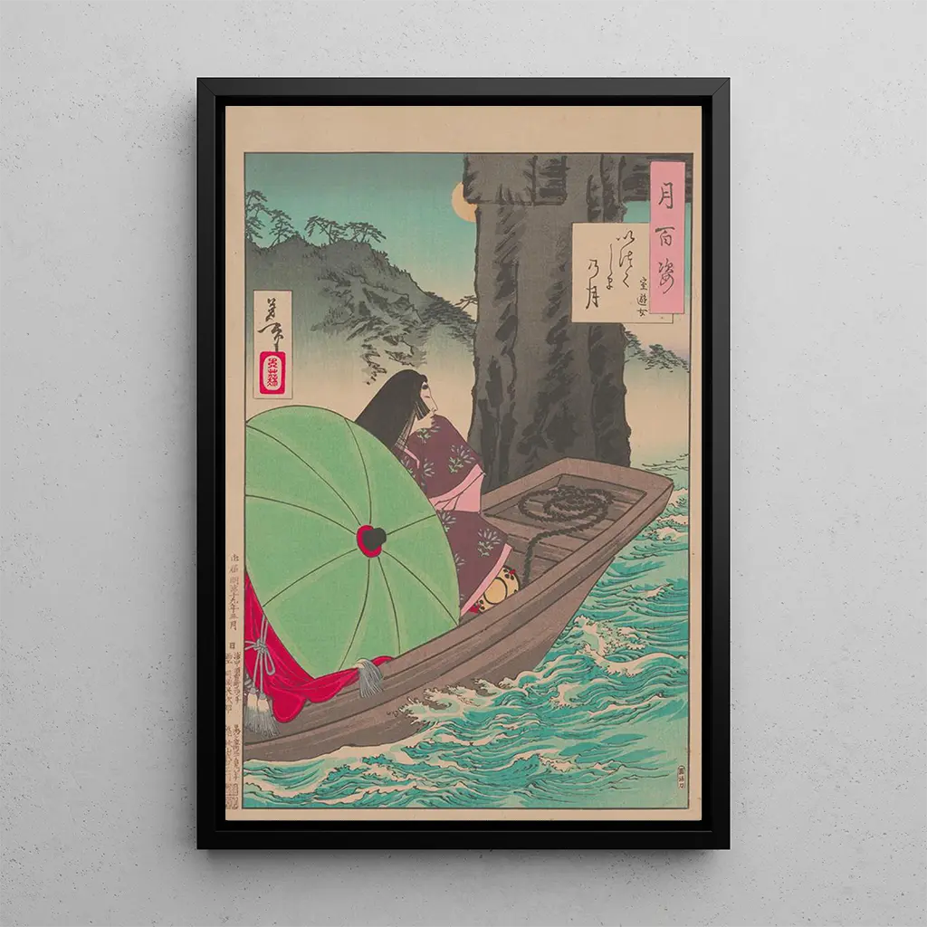 Lune d'Itsukushima : una danza di luce e ombra La stampa d'arte della tela Lune d'Itsukushima evoca un'atmosfera mistica, dove la luna si riflette sulle acque calme della baia di Itsukushima. Le tonalità argentate e bluastre creano un contrasto sorprendente con le sagome scure dei torii e delle montagne sullo sfondo. Tsukioka Yoshitoshi, maestro dell'estampe giapponese, utilizza tecniche di incisione delicate per catturare la bellezza effimera della natura. Quest'opera invita a una contemplazione silenziosa, dove ogni dettaglio sembra sussurrare storie antiche, rendendo omaggio alla spiritualità del paesaggio giapponese. Tsukioka Yoshitoshi : un pioniere della stampa d'arte ukiyo-e Tsukioka Yoshitoshi, nato nel 1839, è uno degli ultimi grandi maestri della stampa d'arte ukiyo-e, un genere di stampa giapponese che ha prosperato durante il periodo Edo. Influenzato dai sconvolgimenti sociali e politici della sua epoca, ha saputo unire tradizione e modernità nelle sue opere. Le sue creazioni, spesso ispirate alla letteratura e al folklore giapponese, testimoniano una profonda sensibilità artistica. Yoshitoshi ha saputo catturare emozioni intense attraverso composizioni audaci, rendendolo una figura emblematica dell'arte giapponese del XIX secolo, il cui lascito perdura ancora oggi. Un acquisto decorativo con molteplici vantaggi La stampa d'arte di Lune d'Itsukushima è un elemento decorativo che si integra armoniosamente in diversi spazi, che si tratti di un soggiorno, di un ufficio o di una camera da letto. La qualità di stampa e la fedeltà ai colori originali ne fanno una scelta ideale per chi apprezza l'arte giapponese. Con il suo indiscusso fascino estetico, questa tela cattura lo sguardo e stimola conversazioni. Aggiungendo quest'opera alla tua collezione, non ti limiti ad abbellire il tuo interno, ma inviti anche un pezzo di cultura e di storia giapponese nella tua quotidianità.