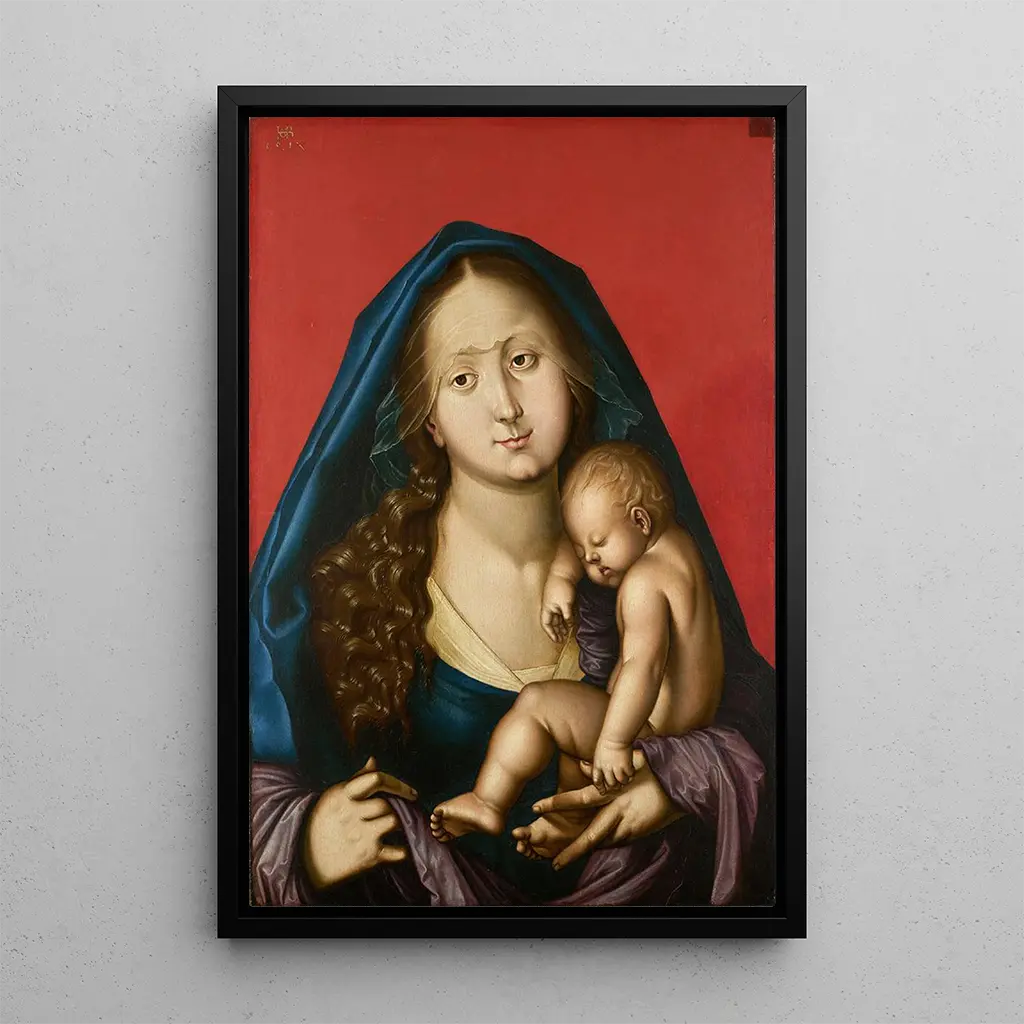 La Madone à l'Enfant endormi è un'opera intrisa di dolcezza e serenità. In questa tela, Hans Baldung cattura un momento di pace tra la Vergine e il Bambino Gesù, avvolti in tonalità calde di rosso e oro. La composizione è accuratamente equilibrata, mettendo in risalto la tenerezza della madre che veglia sul suo bambino addormentato. I dettagli delicati dei drappeggi e delle espressioni facciali creano un'atmosfera intima, quasi sacra, invitando lo spettatore a una contemplazione silenziosa. La luce soffusa che inonda la scena accentua la dimensione spirituale di questa rappresentazione, facendo di questa stampa d'arte un vero capolavoro dell'arte religiosa.