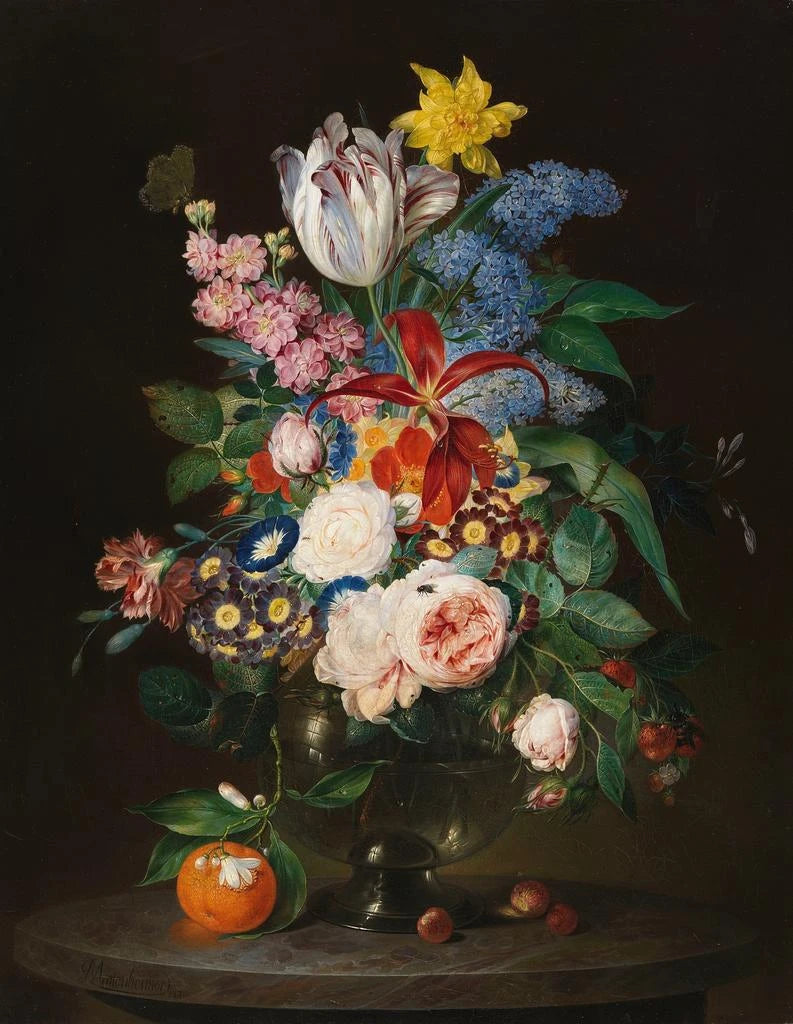 Magnifica natura morta di fiori con insetti - Theodor Mattenheimer