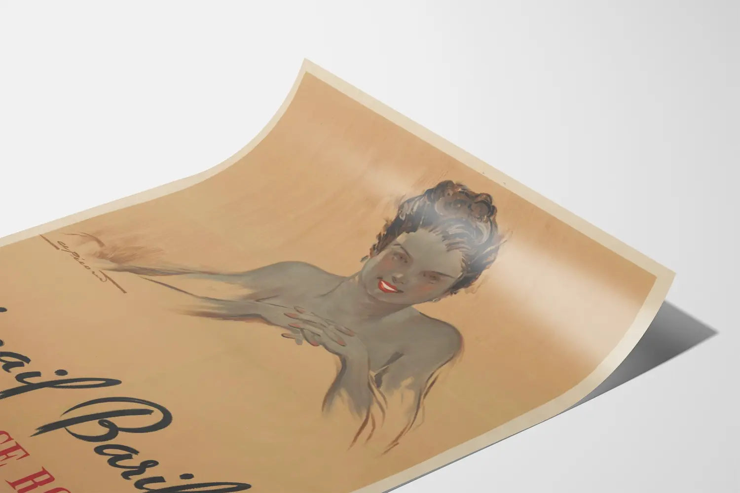 Questa locandina pubblicitaria vintage presenta un'illustrazione affascinante ed elegante di una donna con un sorriso radioso, sottolineando subtilmente il messaggio della promozione del dentifricio rosso Émail Baril. Perfetta per gli appassionati di decorazioni murali dallo stile retrò, questa stampa rappresenta un pezzo unico che aggiunge fascino e autenticità a qualsiasi ambiente. Con i suoi colori delicati e lo sfondo beige, questa locandina diffonde un'atmosfera calda, valorizzando al contempo la tonalità vivace delle labbra, simbolo di freschezza e cura orale. La tipografia antica, ariosa e leggibile, accentua il carattere classico e sofisticato di questa decorazione murale, ideale per abbellire una parete del soggiorno, di uno studio dentistico o di uno spazio vintage. Questa pubblicità rétro si rivolge a chi apprezza l'arte grafica delle campagne pubblicitarie storiche, unendo estetica e funzionalità. I toni neutri e la composizione semplice rendono questa locandina un elemento decorativo versatile, facile da integrare in diversi stili di interior design, dal più tradizionale al più contemporaneo. Che si tratti di un collezionista di locandine pubblicitarie d'epoca o di chi desidera decorare uno spazio in modo originale, questa opera murale offre un tocco di eleganza e storia. Regalate alla vostra decorazione murale questa locandina Dentifricio Rosso Parigi, un classico del grafismo pubblicitario che mette in risalto la bellezza del sorriso attraverso un design pulito ed espressivo.