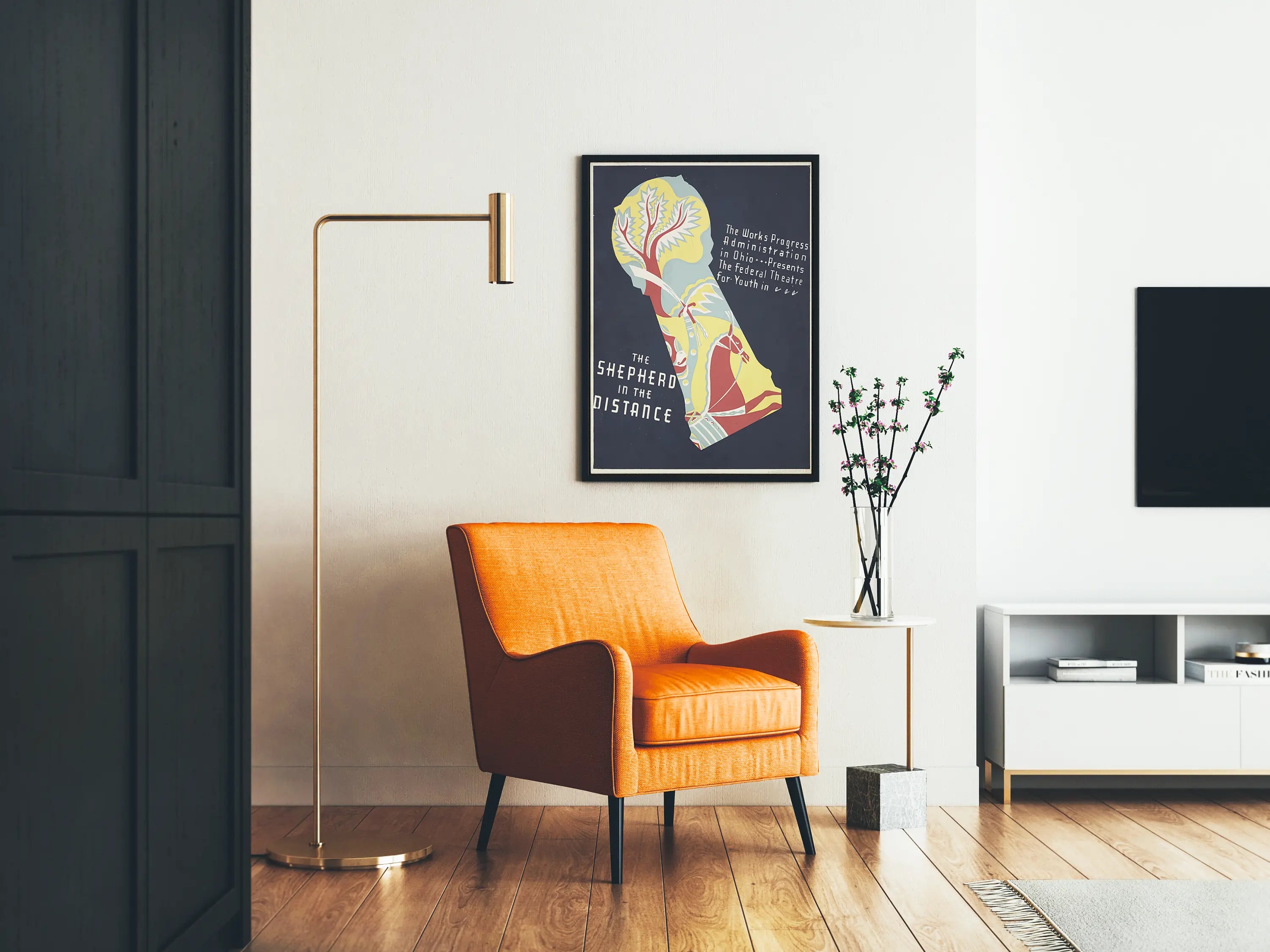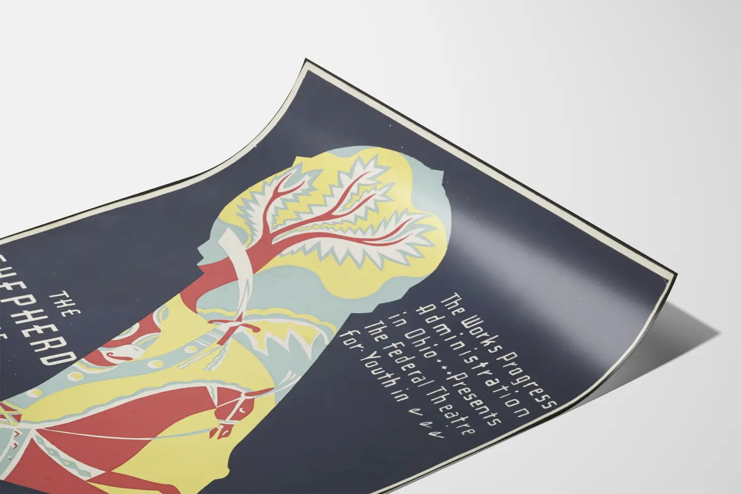 Questa locandina rappresenta una decorazione murale unica nello stile art déco, caratterizzata da forme geometriche e colori contrastanti. Si distingue una silhouette che comprende un albero stilizzato e un cavallo decorato, il tutto immerso in tonalità di rosso, giallo, azzurro chiaro e bianco su uno sfondo scuro. Il testo scritto in caratteri bianchi richiama una presentazione teatrale organizzata dall'amministrazione dei lavori progressivi in Ohio, destinata ai giovani. Questa composizione grafica originale invita a un’atmosfera vintage e artistica, perfetta per arricchire una decorazione murale in un ambiente contemporaneo o retrò. In formato poster, questa locandina apporterà un tocco culturale e ispirato a un salotto, uno studio o uno spazio dedicato alle arti. Il suo design dinamico e la palette di colori la rendono un elemento decorativo attraente, capace di catturare lo sguardo e suscitare curiosità. Ideale per gli appassionati di arte grafica, teatro o storia visiva, questa decorazione murale trasforma una parete classica in una vera opera d’arte, mescolando un’atmosfera storica e un’estetica moderna. Si abbina facilmente a mobili in legno chiaro, accessori minimalisti e elementi di decorazione industriale, offrendo così una versatilità di disposizione per diversi stili di ambienti.