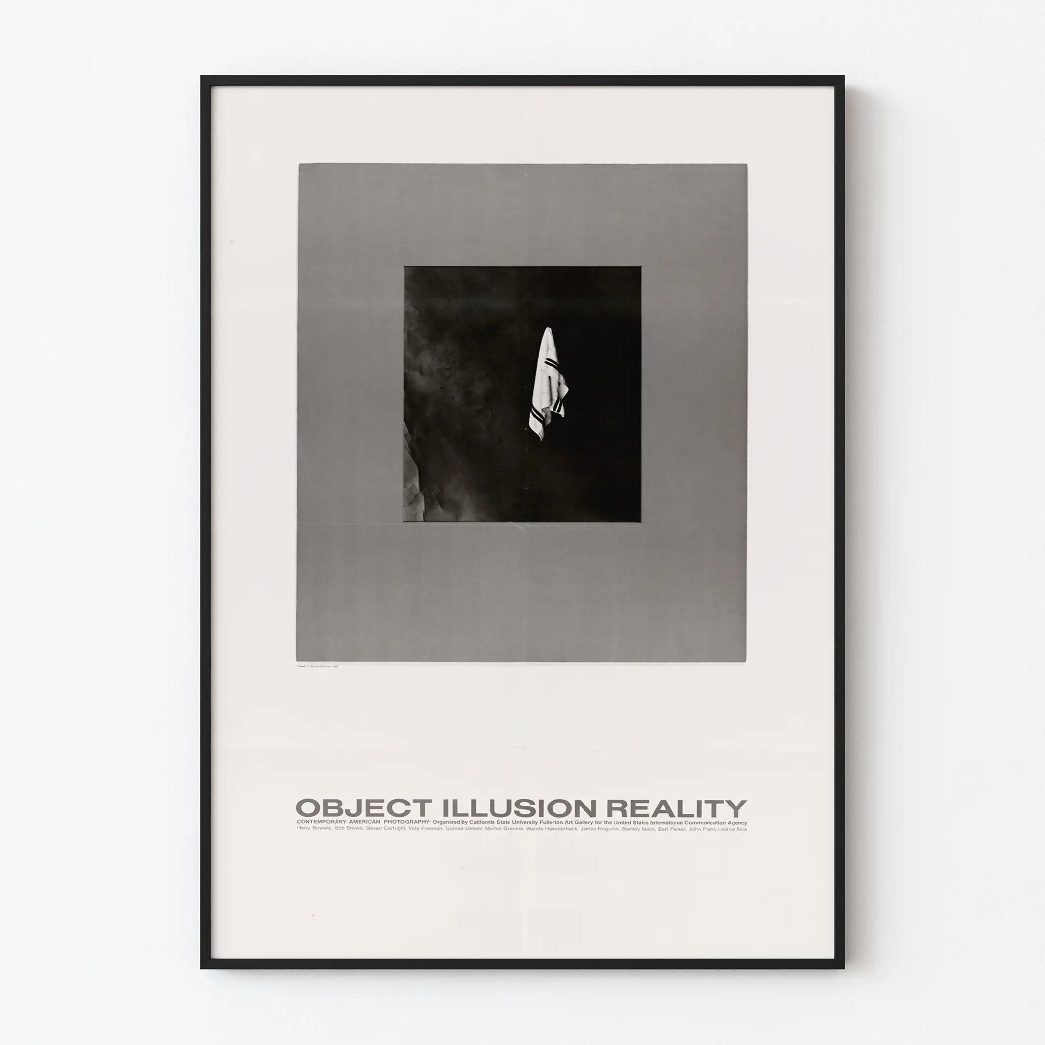 Questa stampa contemporanea intitolata « Object Illusion Reality » offre una rappresentazione visiva sorprendente, ideale per ogni decorazione murale moderna. Il poster presenta una fotografia in bianco e nero, al centro di una cornice grigia neutra che accentua il contrasto e la profondità dell'immagine. Al cuore di questa opera grafica, un semplice oggetto — un asciugamano bianco a righe nere — fluttua in uno spazio scuro e minimalista. Questa composizione gioca con le nozioni di percezione, illusione e realtà, invitando lo spettatore a una riflessione visiva e a un’atmosfera singolare.