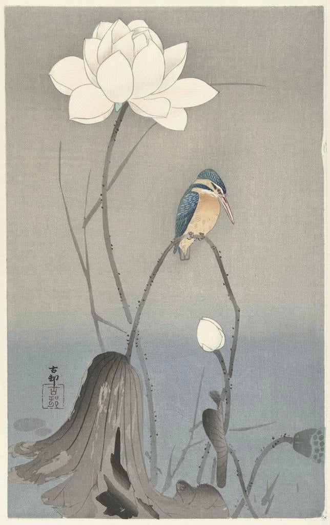 Stampa d'arte | Martin-pêcheur con fiore di loto - Ohara Koson