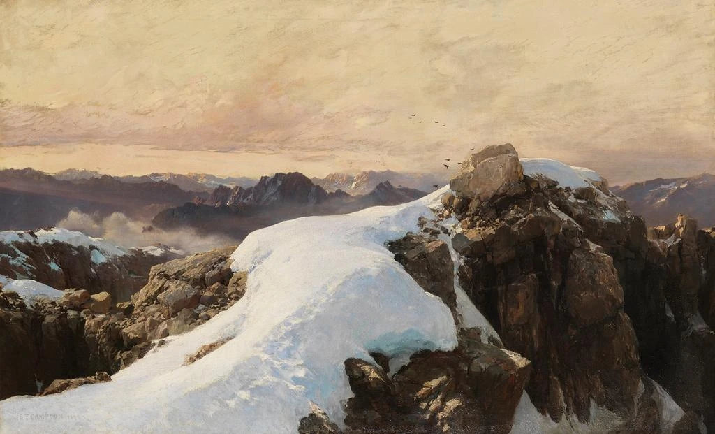 Edward Theodore Compton, attivo alla fine del XIX secolo e all'inizio del XX secolo, è un artista britannico noto per i suoi paesaggi ispirati alle montagne e alle valli. Influenzato dal romanticismo, ha saputo trasmettere la bellezza selvaggia della natura attraverso le sue opere. I suoi viaggi in Europa, in particolare nelle Alpi, hanno profondamente influenzato il suo stile, permettendogli di catturare momenti fugaci di luce e atmosfera. "Mattina in cima alla montagna" è un esempio perfetto del suo talento, testimonianza della sua abilità nel evocare emozioni attraverso paesaggi grandiosi.