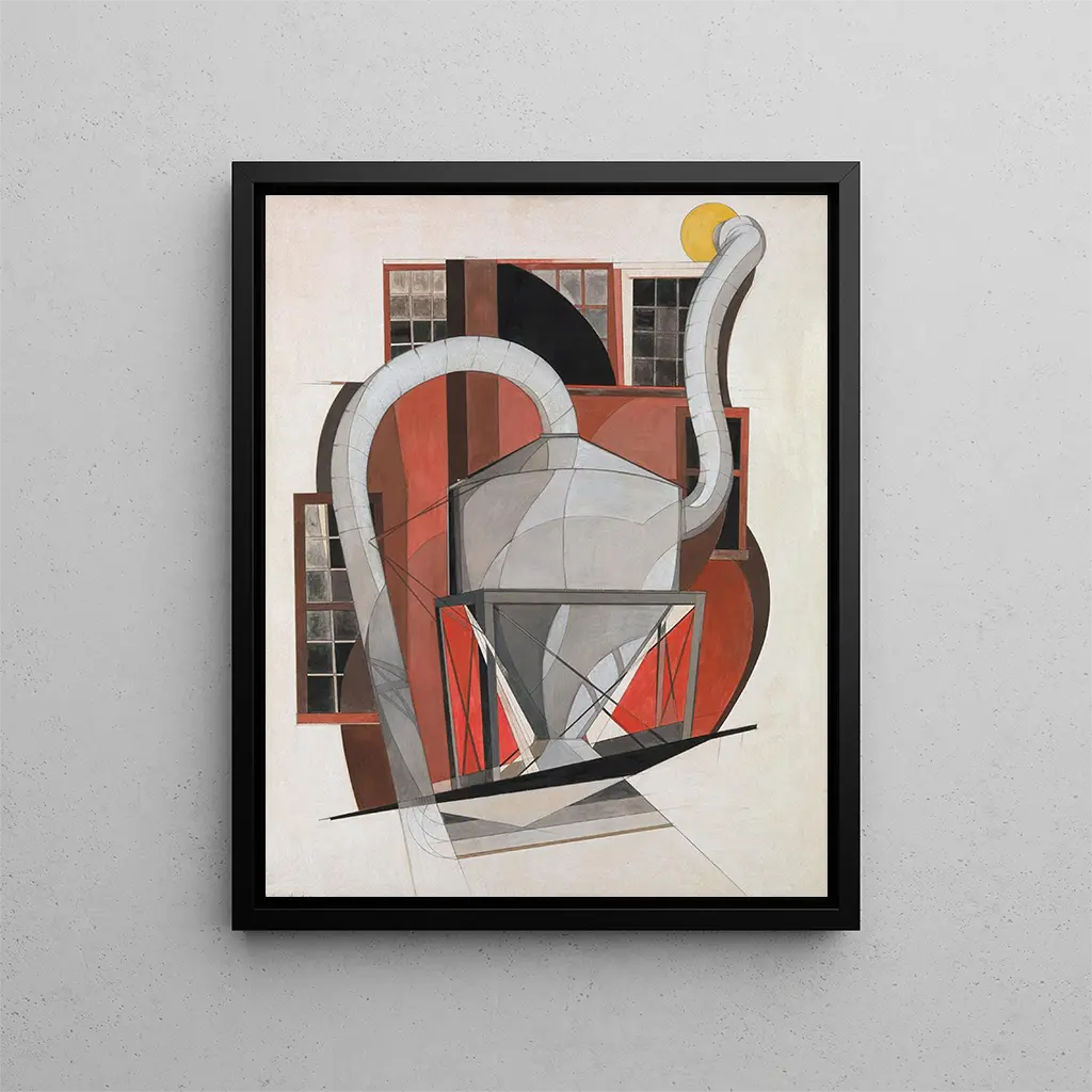 Lo stile di Demuth si distingue per la capacità di mescolare astrazione e rappresentazione. In "Machinerie", le linee nette e gli angoli precisi rivelano una struttura rigorosa, mentre i colori vivaci e le ombre delicate infondono una dinamica quasi cinetica all'opera. Questa tela non si limita a rappresentare macchine; le umanizza, conferendo loro un'anima attraverso il colore e la luce. I giochi di prospettiva, tipici dello stile di Demuth, creano una profondità che coinvolge lo sguardo e invita a un'esplorazione minuziosa. L'artista riesce così a trascendere il semplice oggetto per farne una metafora dell'era moderna, in cui l'uomo e la macchina coesistono in una danza armoniosa.
