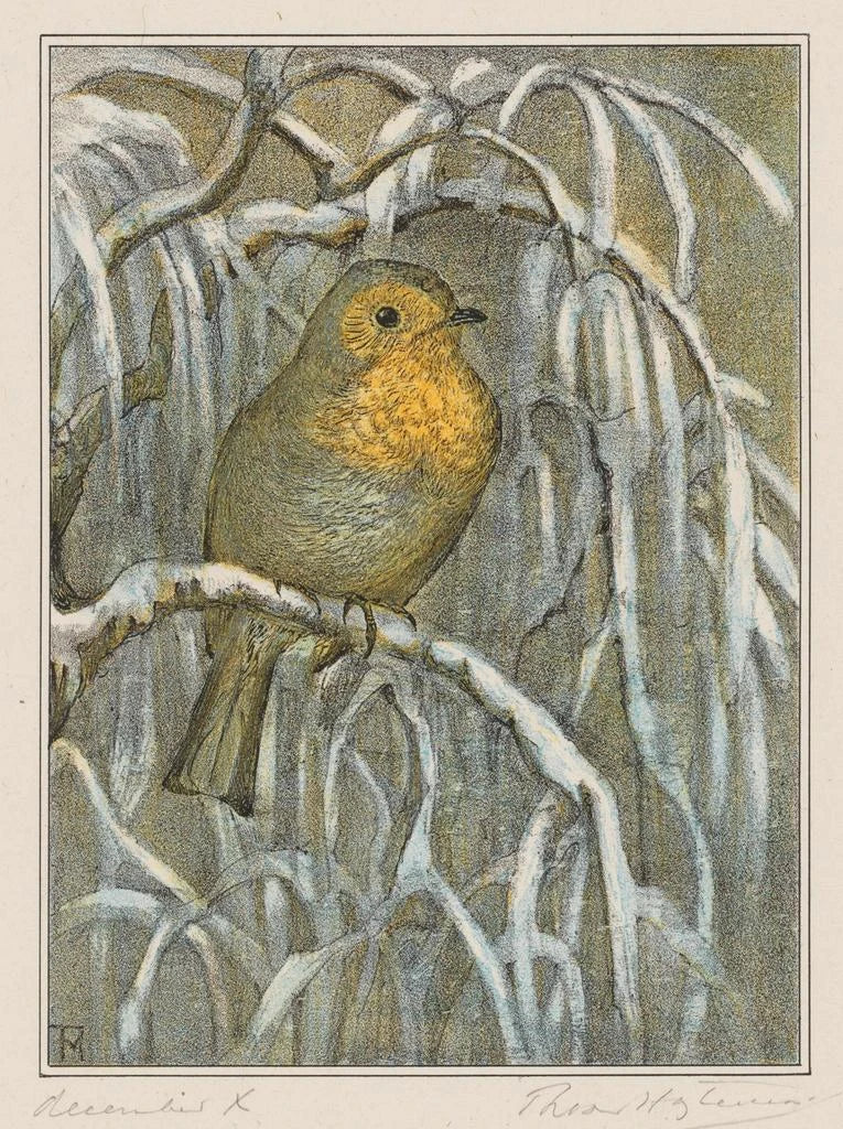 Usignolo su un ramo di albero innevato - Theo van Hoytema