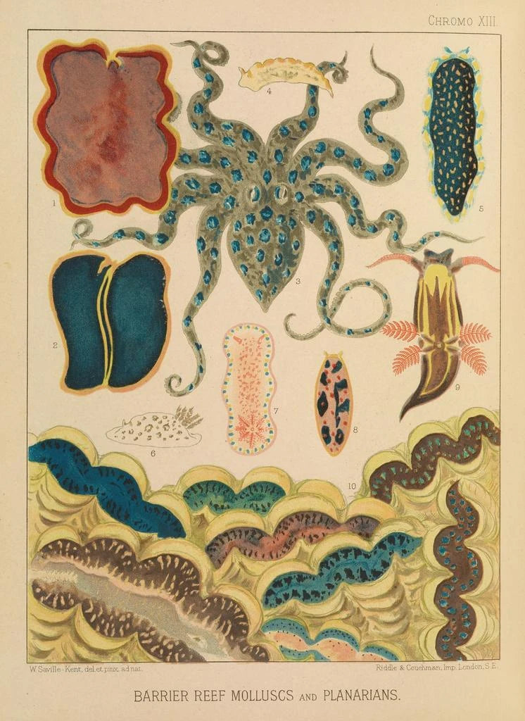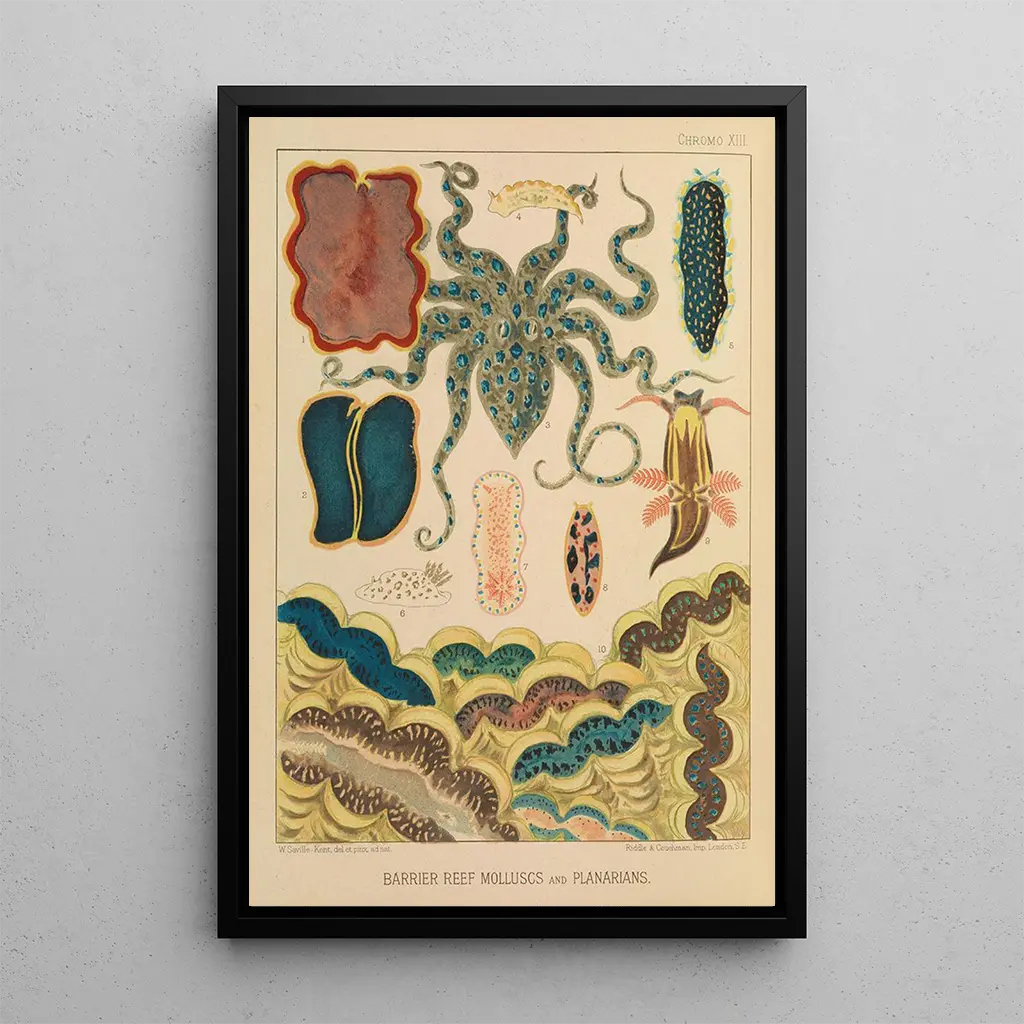 Quadro Molluschi e platelminti della barriera corallina - William Saville-Kent | Stampa d'arte