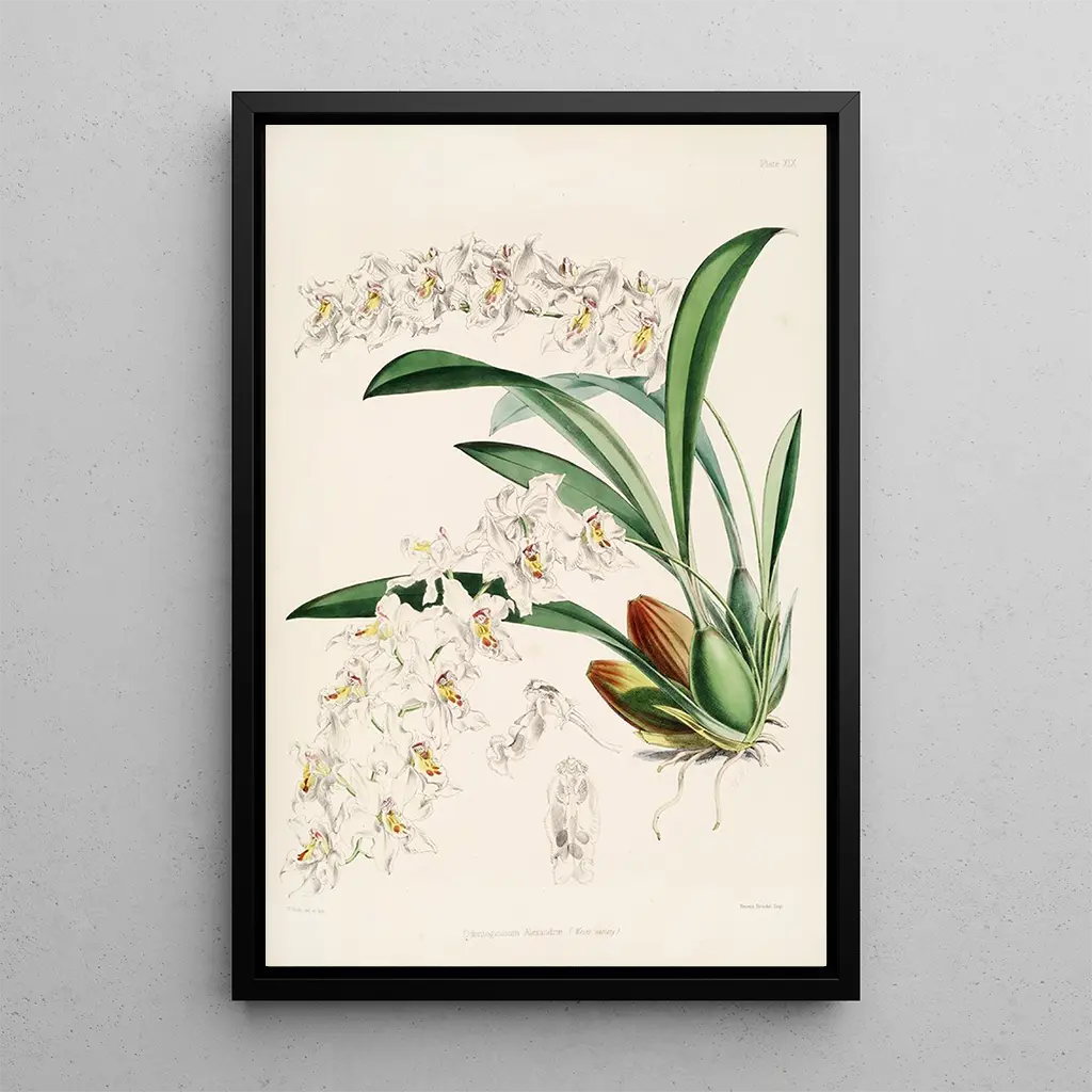 Una monografia di Odontoglossum Pl18: una celebrazione della bellezza floreale L'œuvre "Una monografia di Odontoglossum Pl18" di James Bateman è una vera ode allo splendore delle orchidee. Questo quadro, ricco di dettagli, presenta una composizione armoniosa in cui ogni fiore è valorizzato da colori vivaci e sfumature delicate. La tecnica dell'acquarello permette di catturare la leggerezza e la trasparenza dei petali, creando un'atmosfera quasi eterea. Le ombre sottili e i giochi di luce aggiungono una dimensione ulteriore, invitando lo spettatore a immergersi in questo affascinante universo floreale. James Bateman, botanico e artista del XIX secolo, ha svolto un ruolo cruciale nella documentazione delle specie vegetali. Il suo lavoro si inserisce nel movimento vittoriano, dove l'interesse per la botanica e l'esplorazione delle piante esotiche era al suo apice. Influenzato dai suoi viaggi e dai incontri con altri naturalisti, Bateman ha saputo unire scienza e arte, facendo delle sue opere dei riferimenti per gli appassionati di fiori. "Una monografia di Odontoglossum Pl18" illustra perfettamente questa fusione, testimonianza dell'importanza della rappresentazione botanica nella sua epoca. Una riproduzione decorativa con molteplici vantaggi Questa riproduzione di Una monografia di Odontoglossum Pl18 è una scelta ideale per abbellire il vostro interno. Che sia in un soggiorno, in uno studio o in una camera da letto, questo quadro aggiunge un tocco di freschezza ed eleganza. La qualità di stampa garantisce una fedeltà notevole ai dettagli originali, permettendo di apprezzare appieno la bellezza dell'opera. L'attrattiva estetica di questa tela risiede nella sua capacità di integrarsi armoniosamente in vari stili di decorazione, suscitando l'ammirazione dei visitatori. Regalatevi questo pezzo unico che unisce arte e natura, e lasciatevi trasportare dal suo fascino senza tempo.