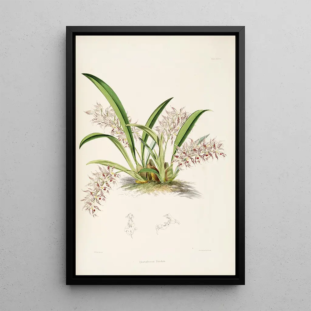 Questa riproduzione "Odontoglossum Pl27" è un pezzo decorativo ideale per abbellire diversi spazi come il soggiorno, l'ufficio o anche la camera da letto. La qualità di stampa garantisce una fedeltà notevole ai dettagli dell'opera originale, permettendo di apprezzarne appieno la bellezza. L'attrattiva estetica di questa tela risiede nella sua capacità di portare un tocco di natura ed eleganza nel vostro interno. Integrando questa stampa nella vostra decorazione, offrite al vostro spazio un'atmosfera serena e raffinata, celebrando allo stesso tempo l'arte botanica.
