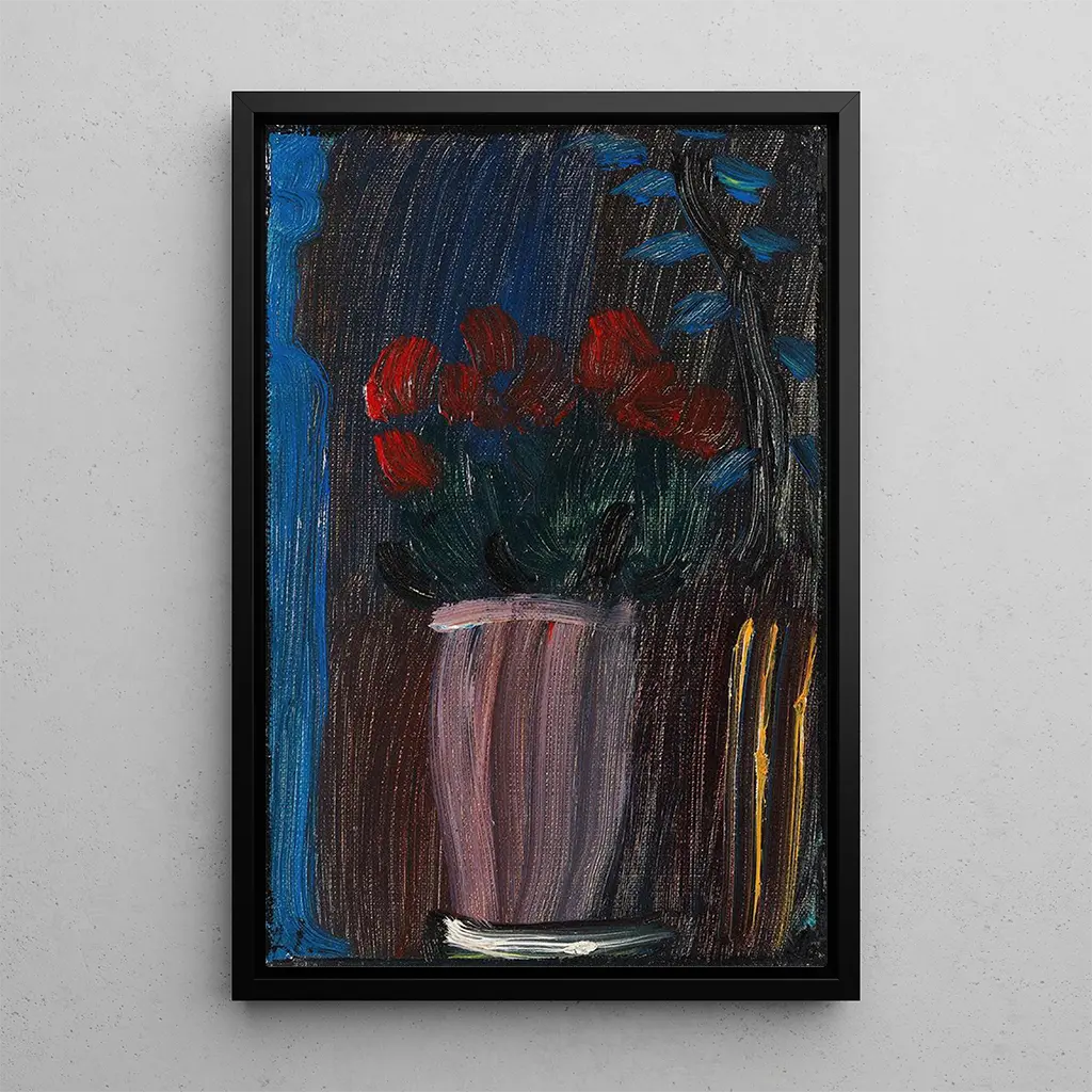 La stampa d'arte della natura morta ciclamino fioritura di Alexej von Jawlensky ci immerge in un universo vibrante dove i colori si intrecciano con delicatezza. I ciclamini, con le loro tonalità rosa vivace e le forme delicate, sembrano danzare sulla tela, mentre lo sfondo astratto, con sfumature di blu e verde, crea un'atmosfera allo stesso tempo rilassante e dinamica. La tecnica di Jawlensky, che mescola il figurativo all'astratto, permette di percepire l'energia vitale di questi fiori, evocando una contemplazione profonda della natura. Ogni colpo di pennello sembra essere un'ode alla bellezza fugace della vita.