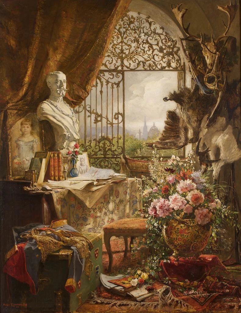 Natura morta con busto del principe ereditario Rodolfo - Hugo Charlemont Source: Nature morte avec buste du prince héritier Rodolphe - Hugo Charlemont