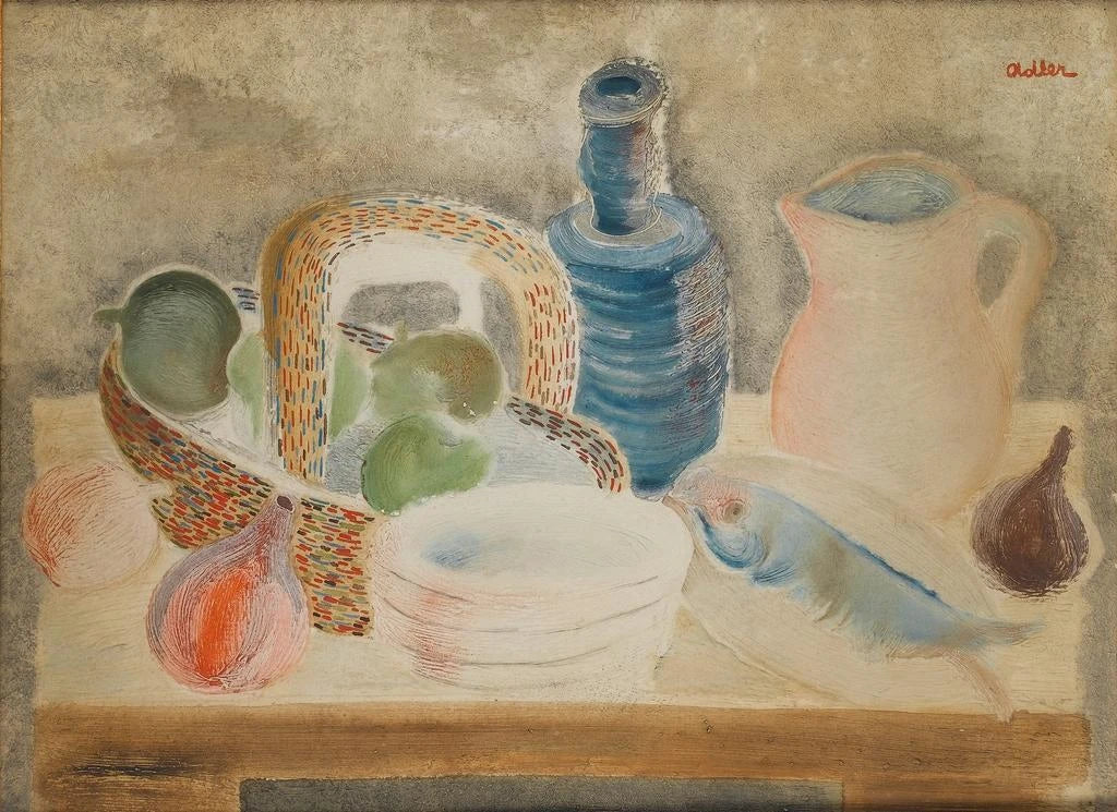 Jankel Adler, nato in Polonia e attivo in Europa nel XX secolo, è spesso associato al movimento espressionista. Il suo percorso artistico è caratterizzato da una ricerca costante di innovazione, pur rimanendo ancorato alle tradizioni pittoriche. Influenzato dai sconvolgimenti della sua epoca, Adler è riuscito a integrare elementi moderni nelle sue opere, creando così un dialogo tra passato e presente. La sua natura morta testimonia questa dualità, dove l’arte classica incontra tecniche contemporanee, offrendo una prospettiva unica sul soggetto.