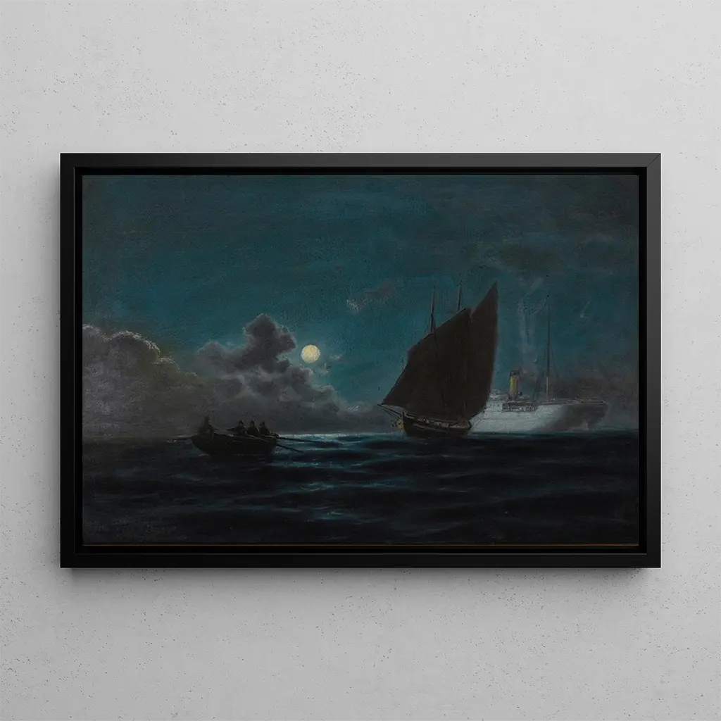 Navires au clair de lune : una danza poetica sulle onde notturne La stampa d'arte Navires au clair de lune di Emilios Prosalentis evoca una scena marittima intrisa di serenità. Le barche, delicatamente illuminate dalla luce della luna, sembrano galleggiare su un mare calmo, mentre il cielo stellato aggiunge una dimensione mistica all'insieme. Le sfumature di blu e d'argento si mescolano armoniosamente, creando un'atmosfera rilassante e contemplativa. La tecnica di Prosalentis, caratterizzata da colpi di pennello fluidi e precisi, dà vita a questa opera, invitando lo spettatore a immergersi in questo paesaggio notturno incantato. Emilios Prosalentis: un maestro del paesaggio marittimo Emilios Prosalentis, pittore greco del XIX secolo, è riconosciuto per le sue rappresentazioni del mare e dei paesaggi costieri. Influenzato dal romanticismo, la sua opera si distingue per una particolare attenzione agli effetti di luce e ai riflessi sull'acqua. Prosalentis è riuscito a catturare l'essenza del mare Mediterraneo, integrando elementi della tradizione artistica europea. La sua carriera, segnata da esposizioni in tutta Europa, ha contribuito a far conoscere l'arte marittima greca, collocando così Prosalentis come una figura importante della sua epoca. Una riproduzione decorativa con molteplici vantaggi La riproduzione del quadro Navires au clair de lune è un pezzo decorativo ideale per portare un tocco di serenità nella vostra casa. Che sia in un soggiorno, in uno studio o in una camera da letto, questa tela evoca un'atmosfera pacifica e sognante. La qualità di stampa garantisce fedeltà nei colori e nei dettagli, permettendo di apprezzare appieno la bellezza dell'opera originale. Con il suo indiscusso fascino estetico, questa stampa d'arte saprà conquistare gli appassionati d'arte e arricchire la vostra decorazione d'interni.