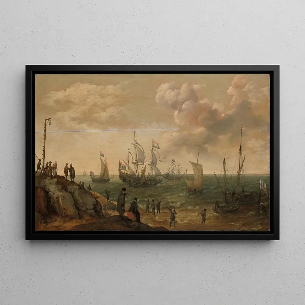 La stampa d'arte "Navi lungo la riva" di Adam Willaerts ci immerge in un'atmosfera pacifica dove il mare e il cielo si incontrano in un'armonia di colori. Le sfumature di blu e di grigio si mescolano sottilmente, creando una profondità che cattura lo sguardo. Le vele bianche delle navi si distinguono delicatamente sullo sfondo nuvoloso, mentre i riflessi sull'acqua aggiungono un tocco di magia a questa scena marittima. La tecnica di Willaerts, caratterizzata da un realismo minuzioso, ci invita a contemplare la bellezza effimera della natura e a percepire la tranquillità di un momento sospeso.