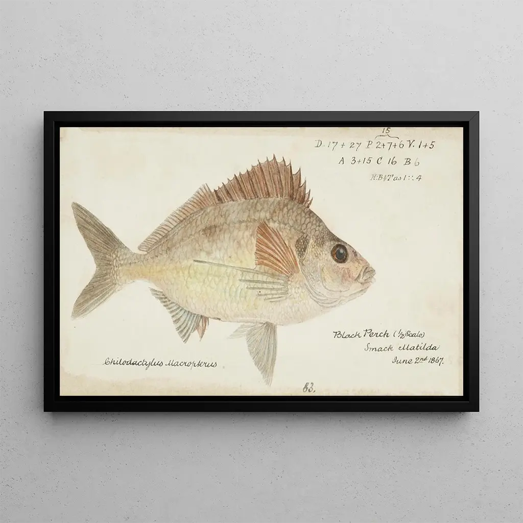 Nemadactylus macropterus, tarakihi della Nuova Zelanda: un'immersione nelle profondità marine La riproduzione di Nemadactylus macropterus, conosciuto anche come tarakihi, ci trasporta nelle acque cristalline della Nuova Zelanda. Questo vibrante quadro di Frank Edward Clarke cattura l'essenza stessa di questo pesce maestoso, con i suoi colori vivaci che vanno dal dorato al blu profondo. La tecnica dell'artista, che combina acquerello e olio, crea un'atmosfera vivace e dinamica, evocando il movimento fluido dell'acqua. Ogni dettaglio, dalle scaglie scintillanti alle onde delicate dell'acqua, è accuratamente reso, offrendo un'esperienza immersiva che invita alla contemplazione delle meraviglie marine. Frank Edward Clarke: un pioniere dell'arte marina Frank Edward Clarke, attivo alla fine del XIX secolo e all'inizio del XX, è riconosciuto per i suoi contributi all'arte marina. Influenzato dai paesaggi costieri della sua infanzia in Nuova Zelanda, ha saputo catturare la bellezza della fauna acquatica con una precisione notevole. Il suo stile, che incrocia il realismo e l'impressionismo, testimonia un'epoca in cui l'esplorazione degli oceani affascinava il mondo intero. Clarke ha saputo immortalare la ricchezza degli ecosistemi marini, facendo delle sue opere testimonianze preziose della biodiversità del suo tempo. La sua passione per la natura e il suo impegno per la conservazione delle specie marine risuonano ancora oggi. Una riproduzione decorativa con molteplici vantaggi Questa riproduzione di Nemadactylus macropterus è un pezzo decorativo che saprà arricchire qualsiasi spazio, che si tratti di un soggiorno, di un ufficio o di una camera da letto. La qualità di stampa garantisce una fedeltà eccezionale ai colori e ai dettagli dell'opera originale, permettendo di apprezzarne appieno l'attrattiva estetica. Integrando questo quadro nella vostra decorazione, portate un tocco di eleganza marina e un invito alla serenità. Questa scelta decorativa non mancherà di suscitare curiosità tra i vostri ospiti e di creare un'atmosfera rilassante, celebrando al contempo la bellezza della natura.
