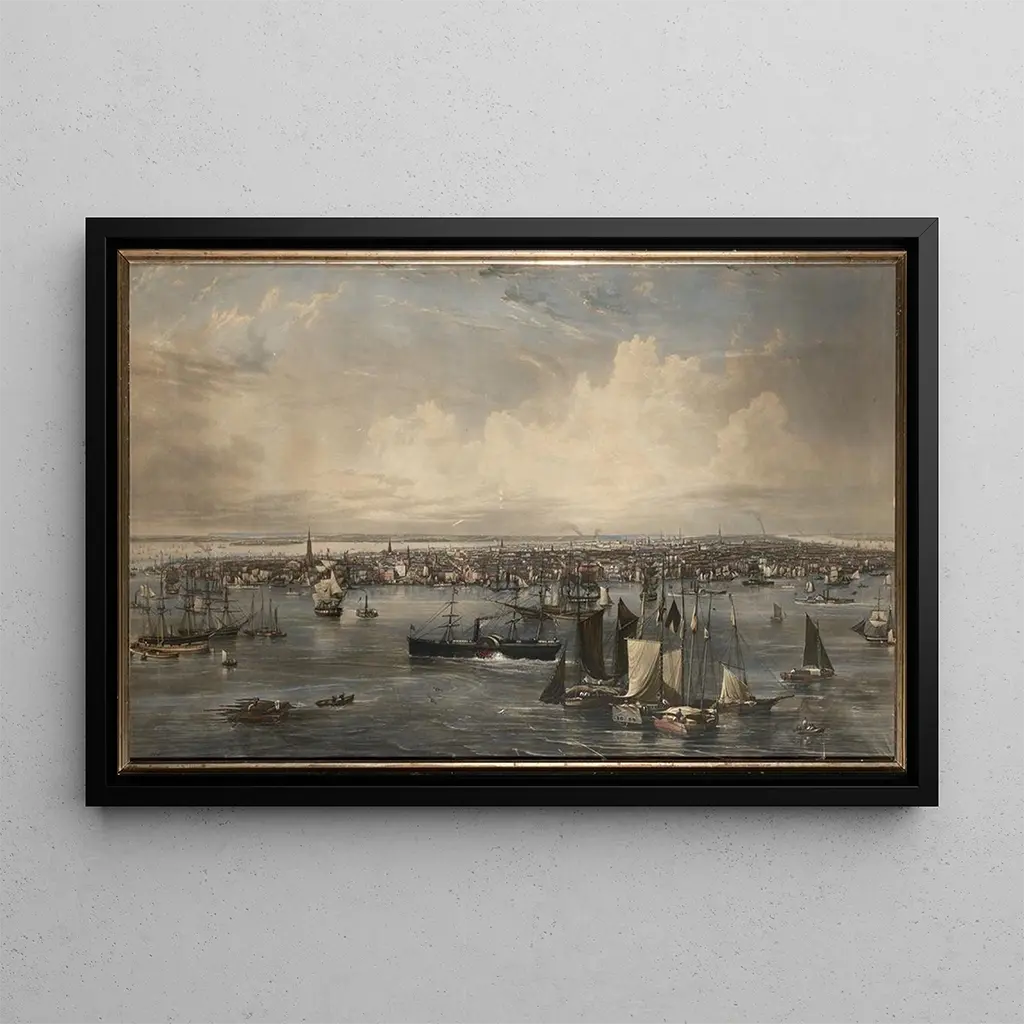 New York : una metropoli in piena fermento In questa opera emblematico, John William Hill dipinge la città di New York con una precisione sorprendente. Il quadro, ricco di dettagli, rivela l'animazione delle strade e l'architettura maestosa degli edifici. I colori vivaci e i contrasti dinamici evocano l'energia vibrante della metropoli, mentre i personaggi in movimento aggiungono una dimensione umana a questa scena urbana. L'atmosfera è allo stesso tempo moderna e nostalgica, catturando l'essenza di una città in continua evoluzione. John William Hill : un testimone dell'urbanizzazione americana John William Hill, attivo nel XIX secolo, è riconosciuto per le sue rappresentazioni di paesaggi urbani e di scene di vita quotidiana. In quanto artista del periodo romantico, ha saputo catturare l'ascesa delle città americane, in particolare New York, in un'epoca in cui l'urbanizzazione prendeva slancio. Influenzato dal realismo, Hill ha cercato di rappresentare la vita così com'era, integrando elementi di bellezza e armonia. Il suo lavoro testimonia l'evoluzione dell'arte americana e la crescente fascinazione per le grandi città. Un'acquisizione decorativa con molteplici vantaggi La riproduzione di "New York" è perfetta per chi desidera aggiungere un tocco di eleganza e dinamismo alla propria decorazione d'interni. Che si tratti di un ufficio moderno, di un soggiorno contemporaneo o di una camera da letto, questa tela attira lo sguardo e suscita interesse. La qualità di stampa fedele all'opera originale garantisce una durabilità e un impatto visivo impressionanti. Scegliendo questa stampa d'arte, non solo inserisci un'opera d'arte nel tuo spazio, ma anche un riflesso della storia e dell'evoluzione di una delle più grandi città del mondo.