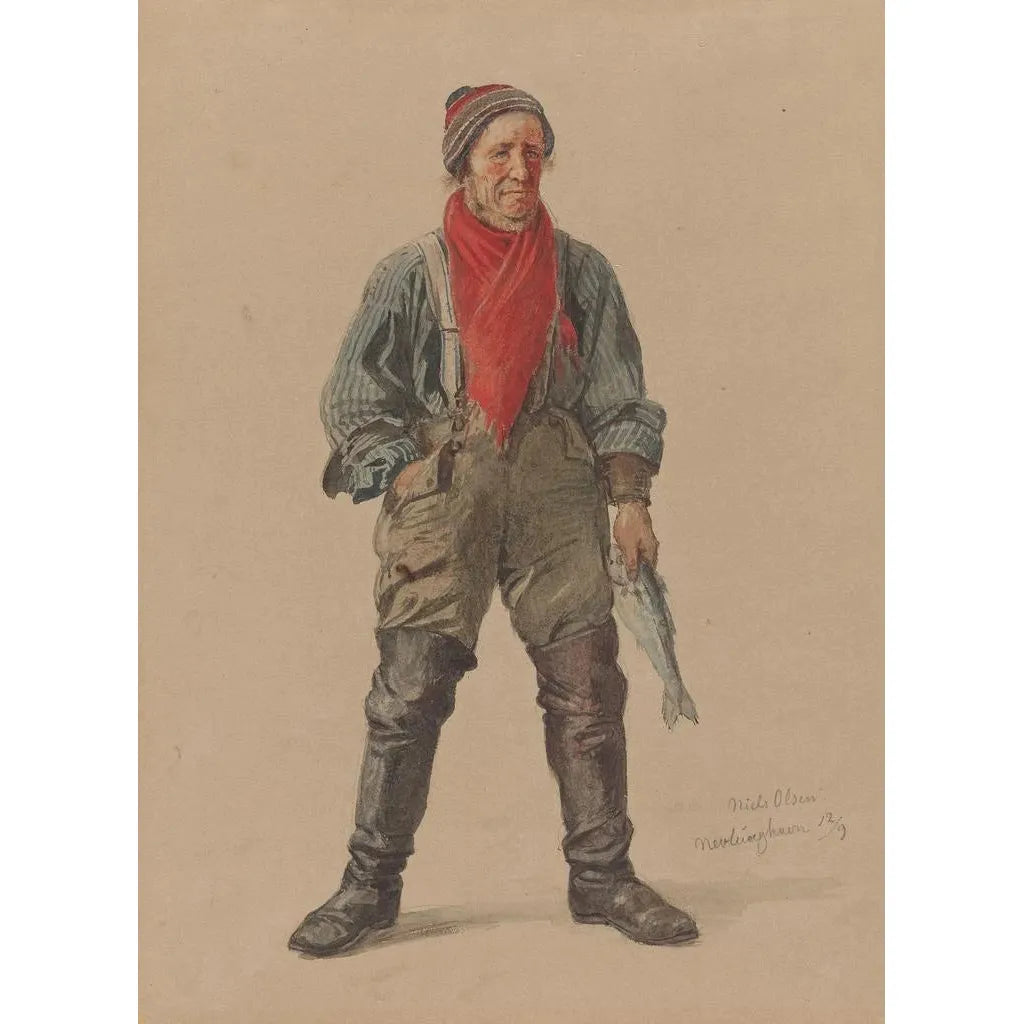 Adolph Tidemand, figura emblematica del XIX secolo, ha saputo catturare l'anima della Norvegia attraverso le sue opere. Il suo stile, radicato nel realismo, è influenzato dalle tradizioni folkloriche e dai paesaggi scandinavi. Tidemand ha dedicato la sua carriera a rappresentare la vita quotidiana, mettendo in evidenza le usanze e i paesaggi del suo paese natale. "Niels Olsen Nevlunghavn" illustra perfettamente il suo impegno verso la cultura norvegese, dimostrando anche il suo talento nel creare composizioni sia realistiche che poetiche. Il suo patrimonio artistico continua a ispirare generazioni di artisti e appassionati d'arte.