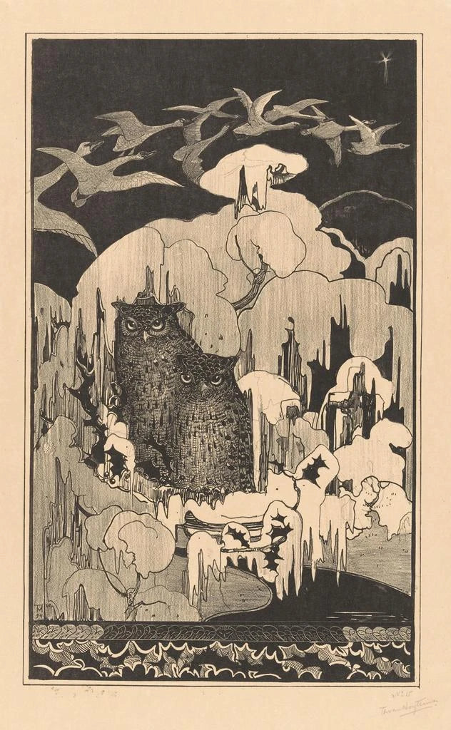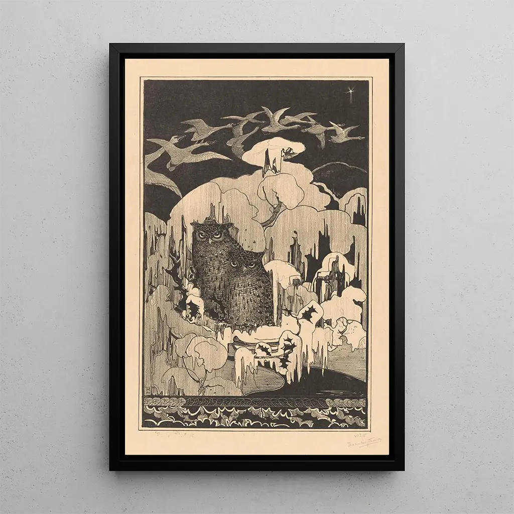 Theo van Hoytema, nato nel 1863 nei Paesi Bassi, è un artista il cui lavoro si inscrive nel movimento naturalista dei primi del XX secolo. Influenzato dai paesaggi olandesi e dalla luce unica del suo paese, sviluppa uno stile che unisce precisione e poesia. La sua carriera è segnata dalla ricerca della bellezza nella natura, così come da una fascinazione per le scene notturne. "Nuit de Noël" testimonia la sua abilità nel catturare momenti effimeri, riflettendo al contempo l’importanza dell’armonia tra uomo e ambiente. La sua opera continua a ispirare appassionati d’arte e collezionisti.