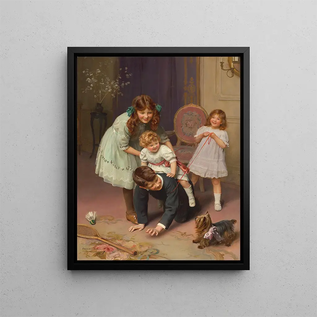 Arthur John Elsley, nato nel 1855, è un pittore inglese il cui talento ha saputo affermarsi sulla scena artistica del suo tempo. Formato alla Royal Academy, ha sviluppato uno stile unico che combina tradizione e modernità. La sua passione per la rappresentazione dei bambini e degli animali lo ha reso un artista molto apprezzato, in particolare tra le famiglie dell'aristocrazia vittoriana. Elsley ha saputo catturare l'innocenza e la bellezza dell'infanzia attraverso scene di vita quotidiana, diventando un pioniere in questo campo. La sua influenza perdura ancora oggi, ispirando numerosi artisti contemporanei che cercano di esplorare i temi della nostalgia e della semplicità. Attraverso le sue opere, è riuscito a creare un forte legame emotivo con il pubblico, un'eredità che continua a vivere attraverso