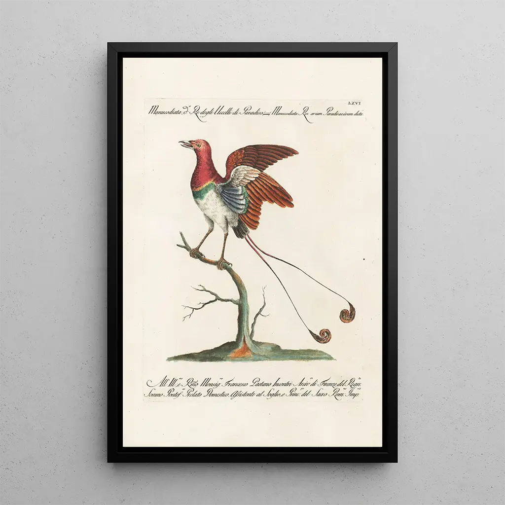 La stampa d'arte d'Ornithologie méthodiquement disposée Pl066 de Saverio Manetti se présente comme une célébration de la diversité des espèces aviaires. Cette œuvre, minutieusement élaborée, met en avant une variété d'oiseaux, chacun représenté avec une précision remarquable. Les couleurs, allant des teintes vives aux nuances plus douces, créent un tableau vivant qui attire le regard et stimule l'imagination. L'atmosphère qui se dégage de cette toile est à la fois joyeuse et sereine, invitant le spectateur à s'immerger dans le monde fascinant des oiseaux.
